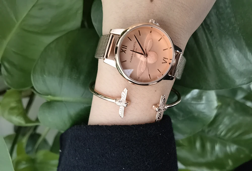 1. Изготовлен из 100% цинкового сплава чехол с сетчатой лентой из нержавеющей стали 2. Цвет: IP цвет покрытия с розовым золотом 3. Японский кварцевый механизм 4. Застежка из нержавеющей стали 5. Длина ремешка часов может быть скорректирована, чтобы соответствовать вашему запястью 6. Водонепроницаемость до 3 АТМ