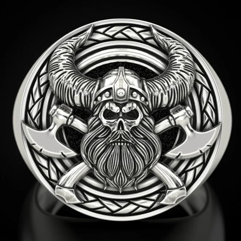 KOFSAC 2021 модного серебристого цвета кольца для мужчин вечерние хип-хоп личность скандинавской мифологии пиратское кольцо с черепом ювелирные изделия