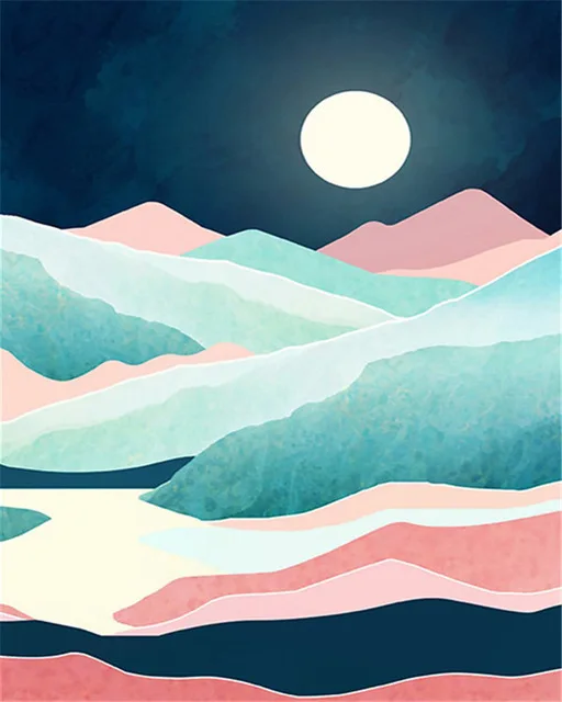 Картина для рисования по номерам на холсте, луна, река, набор для р...