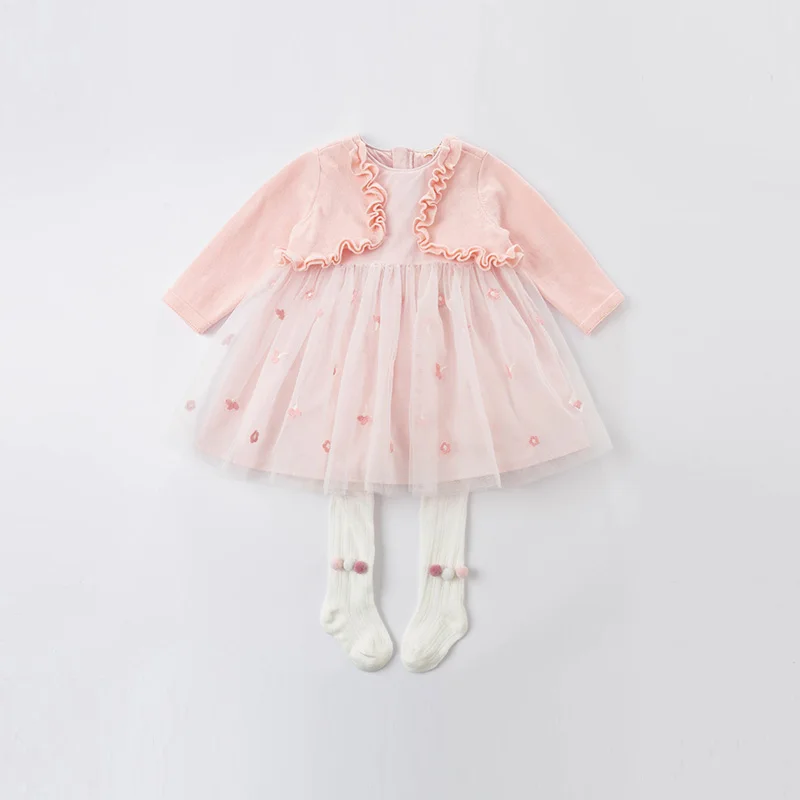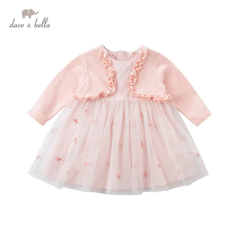 DBJ17133 нижнее белье в стиле бренда dave bellaвесна, сказочное детское платье для девочек милое платье с цветочной вышивкой из сетчатой ткани; Модное детское платье; Вечерние платья для маленьких детей в стиле "Лолита", одежда