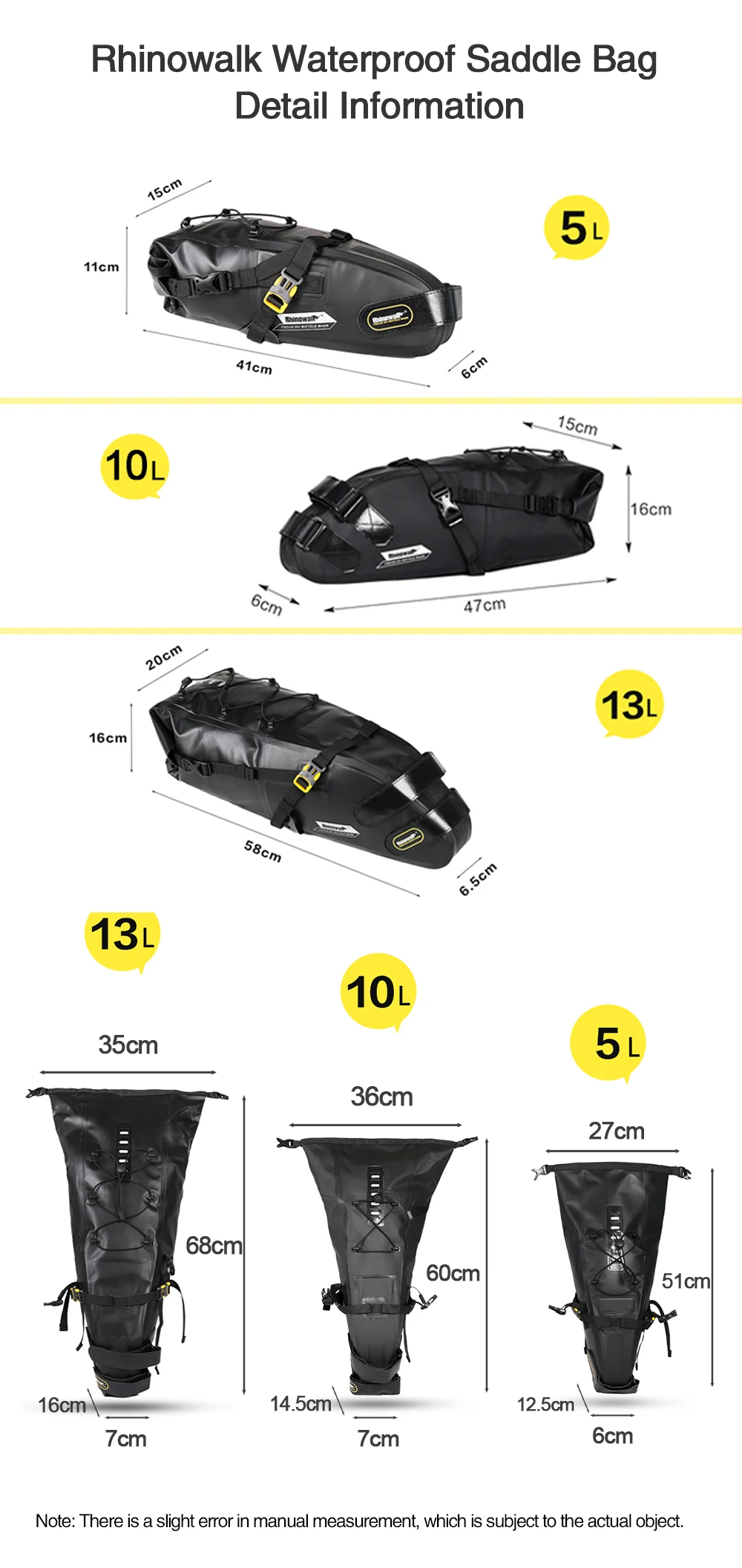 Велосипедная сумка-Седло Rhinowalk, водонепроницаемая Светоотражающая вместительная Складная задняя Сумка, велосипедный багажник, черный велосипедный аксессуар