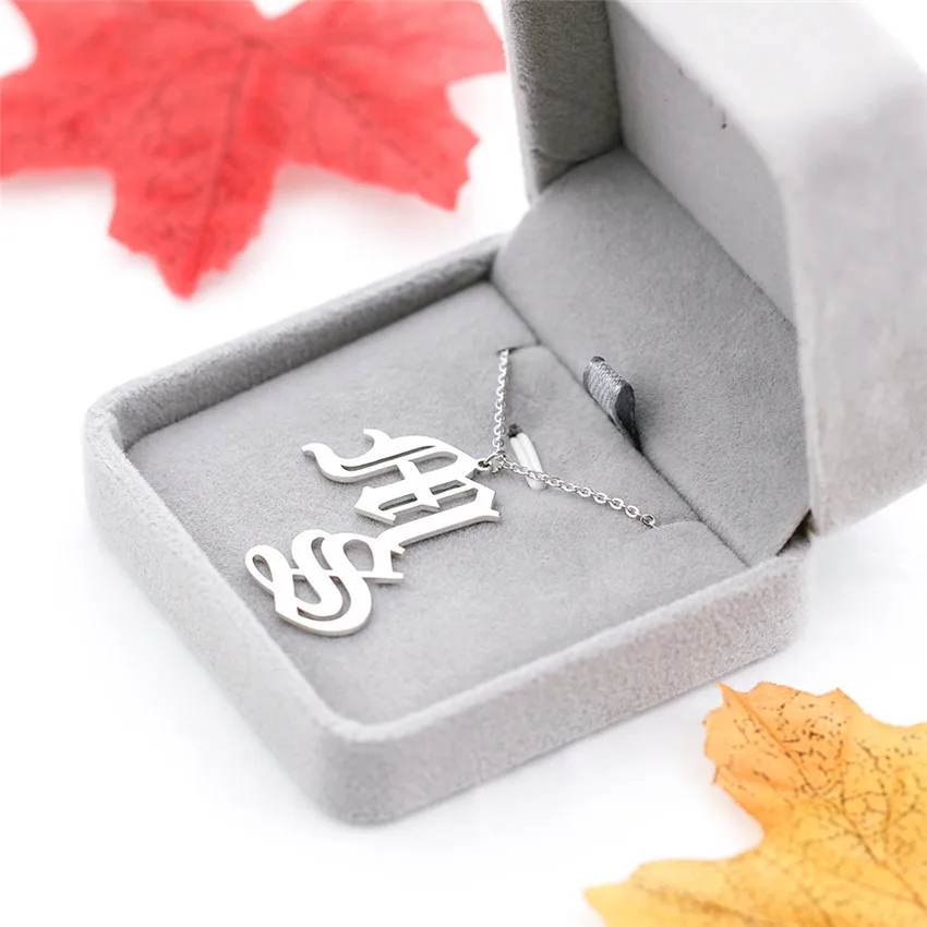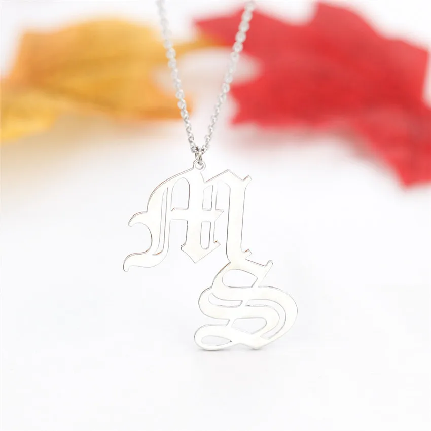 На заказ готическое старинное английское двойное ожерелье с буквенным принтом, золото, персонализированные именные таблички, колье для женщин, нержавеющая сталь, бохо, ювелирное изделие, подарок