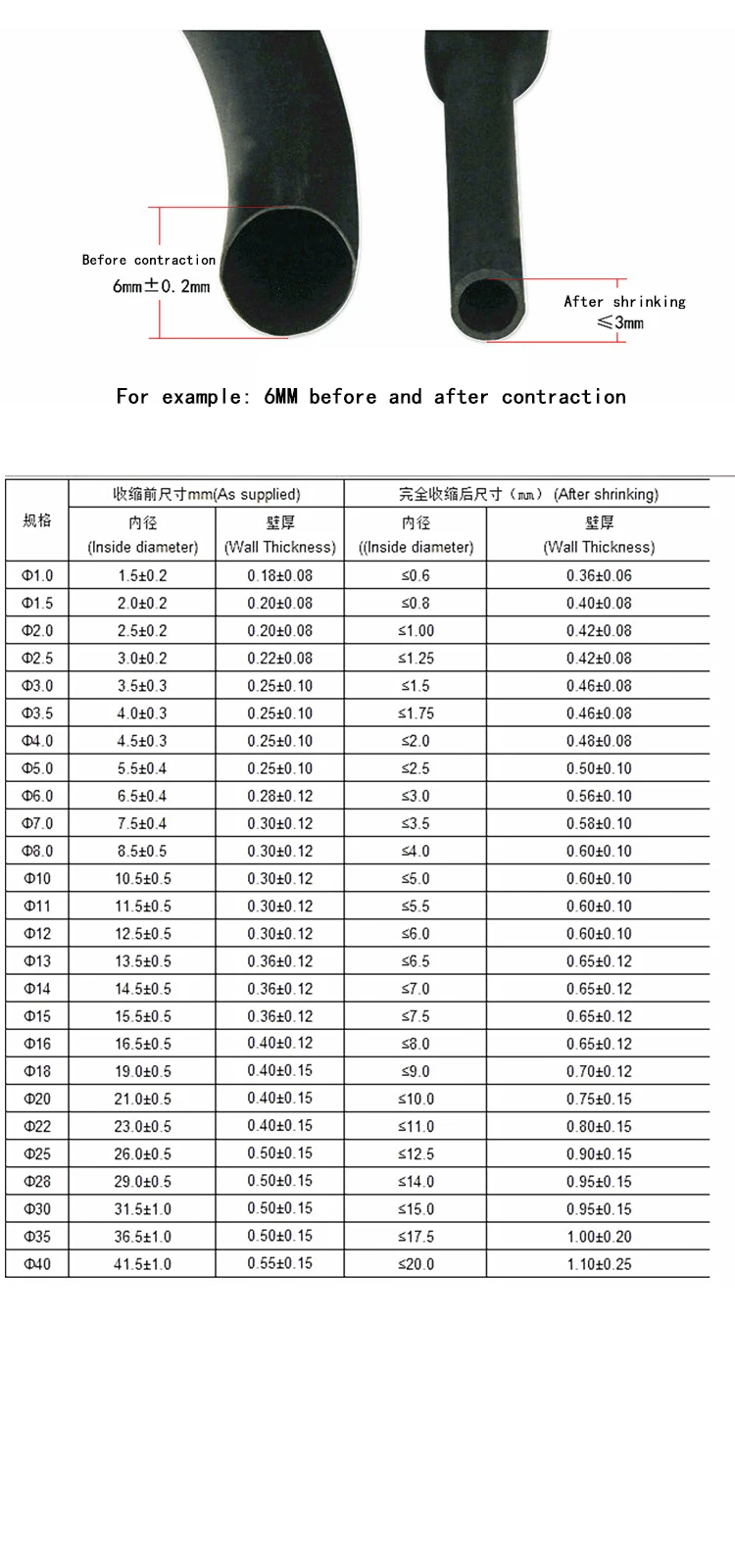 Термоусадочная трубка, термоусадочная трубка 2:1, черная, 1, 2, 3, ...