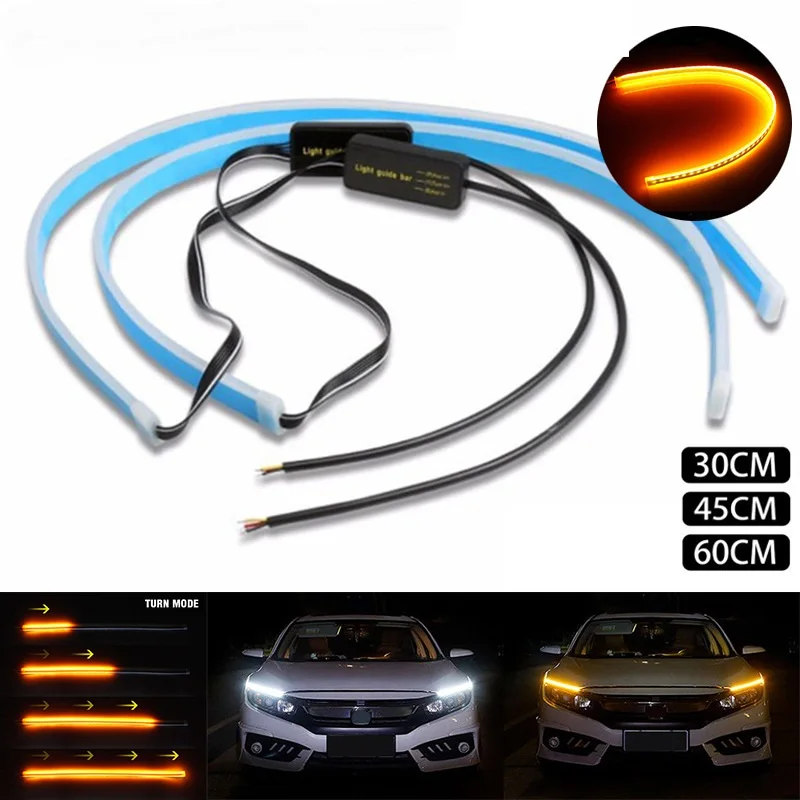 1 pair12V светодиодный DRL Автомобильные фары дневного света светильник гибкий 30 45 60 см Водонепроницаемый полосы Авто головного средства ухода за кожей Шеи светильник с белым светом сигнал поворота желтый светильник s