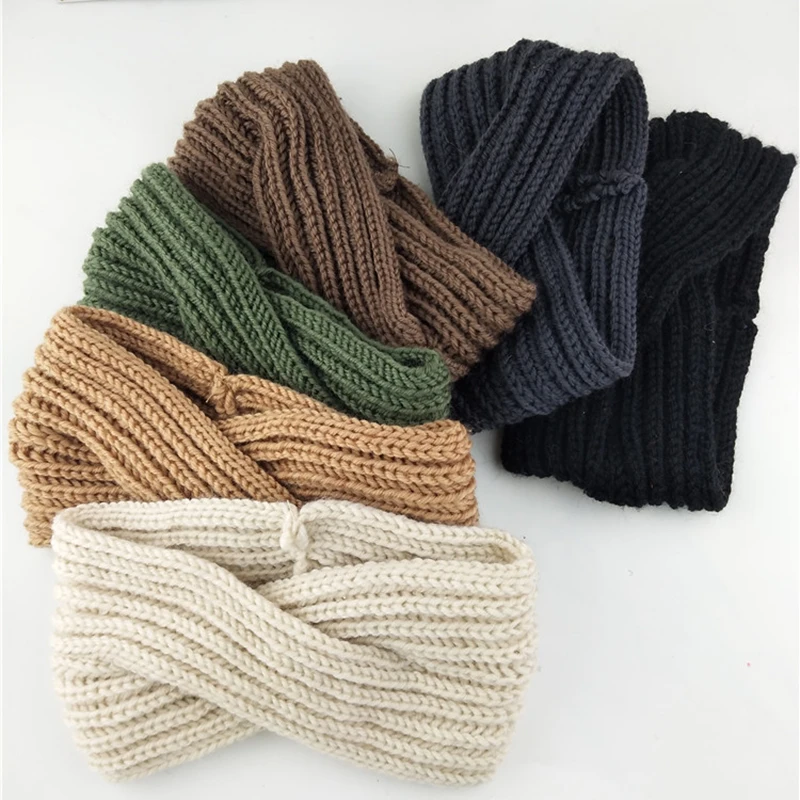 1 шт. Зимняя повязка на голову, однотонные красочные перекрестные з...