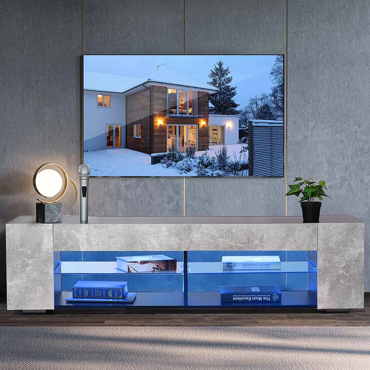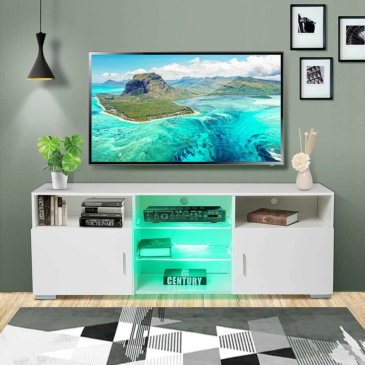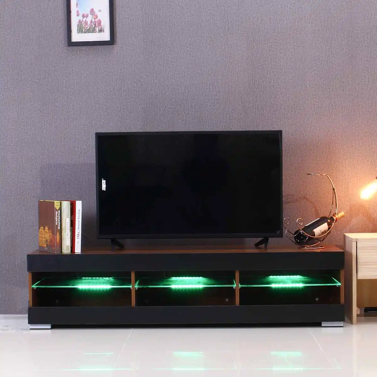 Эта Подставка для телевизора с потрясающим дизайном и премиальным качеством идеально подходит для любителей дома. Стеклянные полки с разноцветной светодиодной подсветильник кой (пульт дистанционного управления для изменения цвета входит в комплект), который изготовлен из МДФ и имеет достаточно места для хранения. Это не только тумба под телевизор, но и украшение для вашей домашней гостиной.
