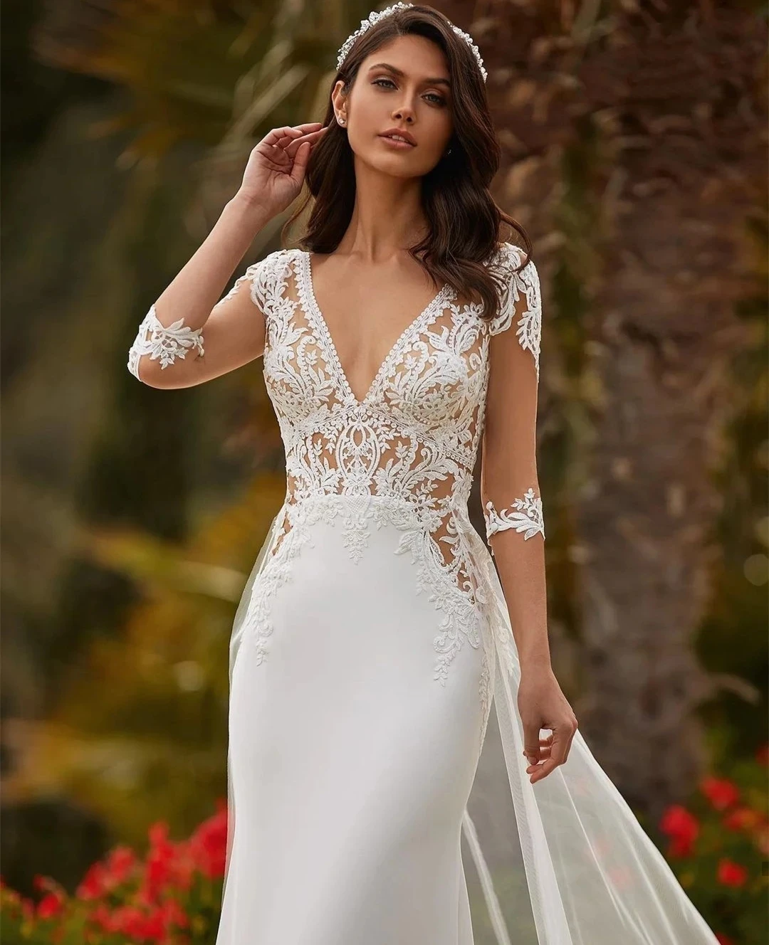 Женское свадебное платье с юбкой-годе, кружевное платье со съемной юбкой и шлейфом, платье невесты с открытой спиной и рукавом 34, на заказ