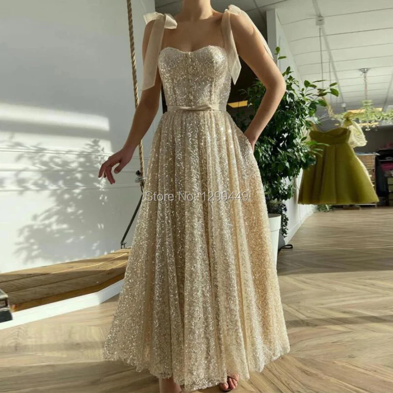 Блестящие платья на тонких бретелях LORIE, вечернее платье длиной до середины икры с блестками для выпускного вечера, платье знаменитости