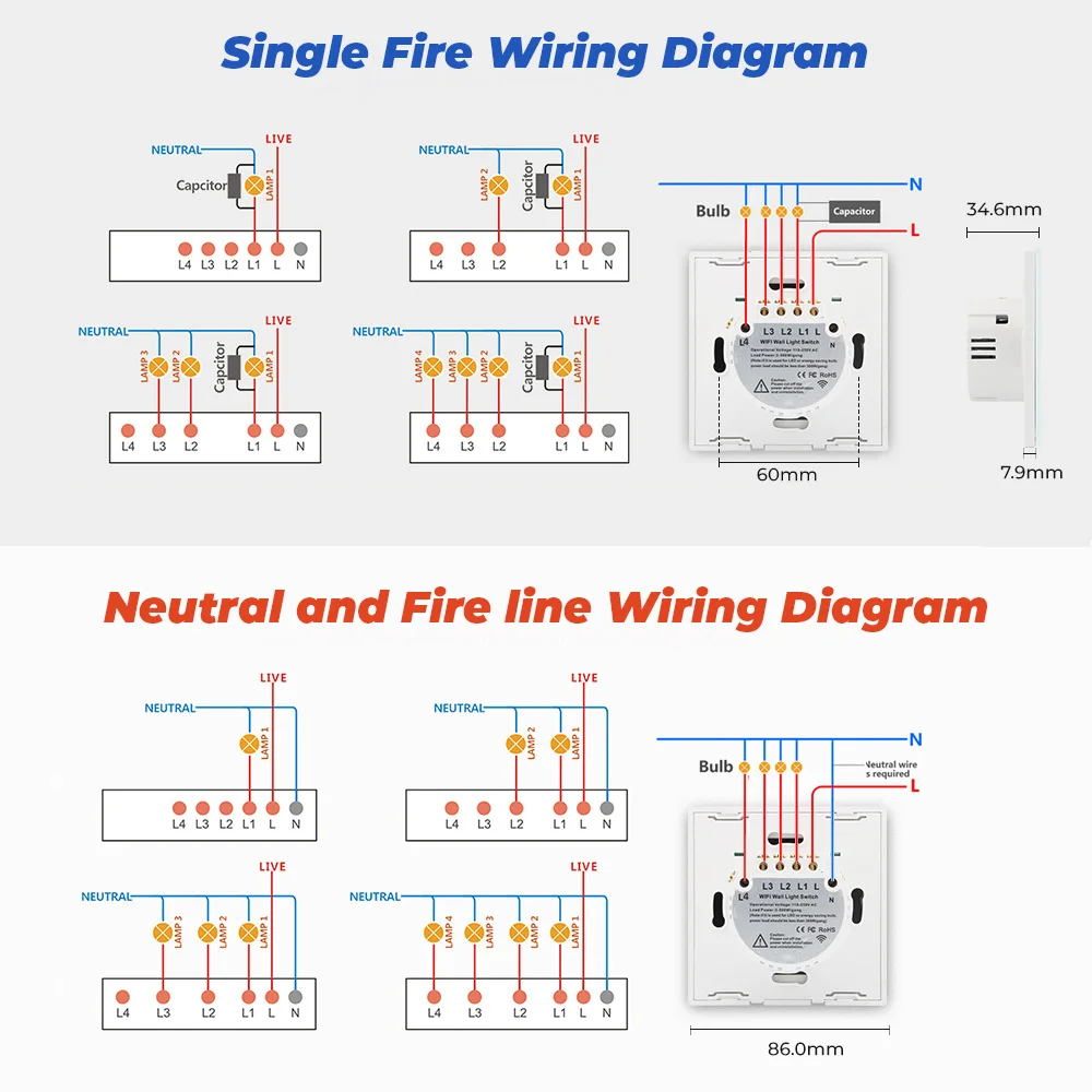 1. Переключатель Wi-Fi не имеет функции диммера (кроме переключателя диммера) независимо от того, подключаете ли вы лампочку с функцией диммера или нет. Он может управлять только открытием и закрытием света.2. Мощность переключателя 3 ~ 500 Вт. Если мощность лампы менее 3 Вт или более 500 Вт, пожалуйста, не используйте этот переключатель, иначе он не будет работать нормально.