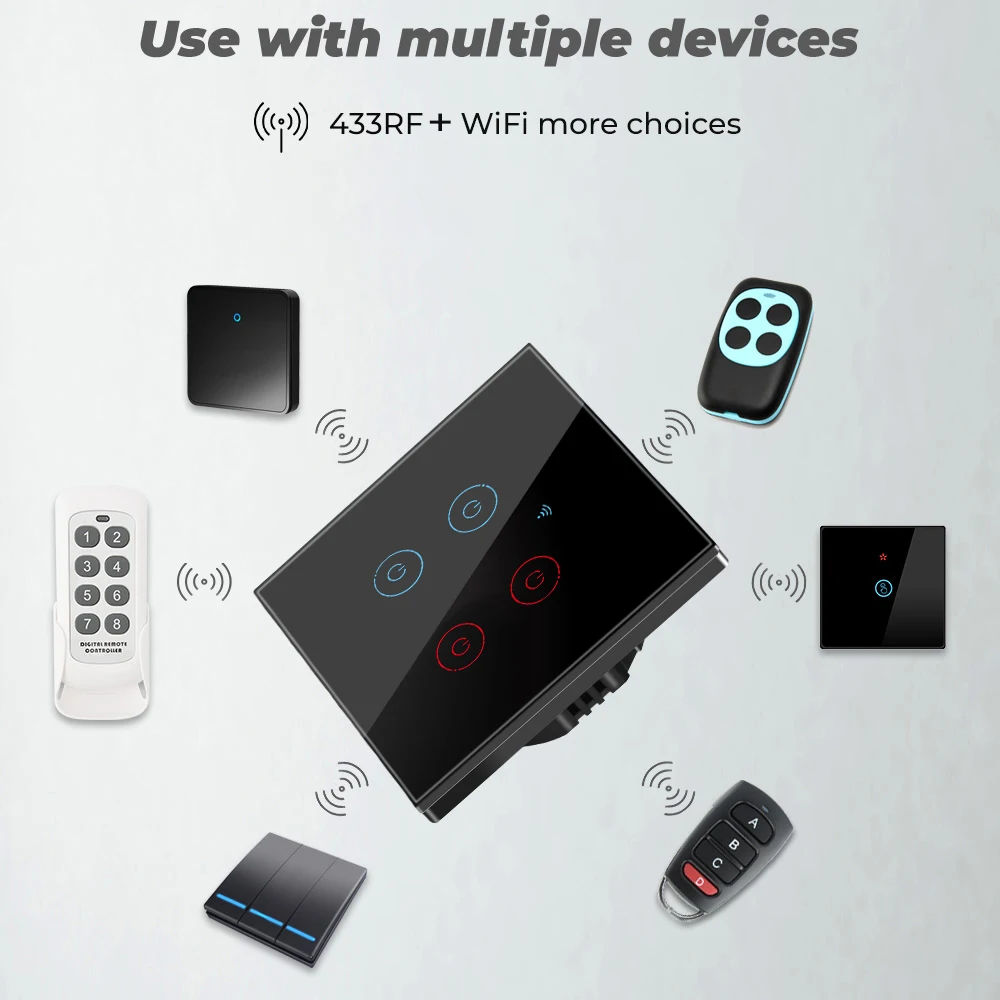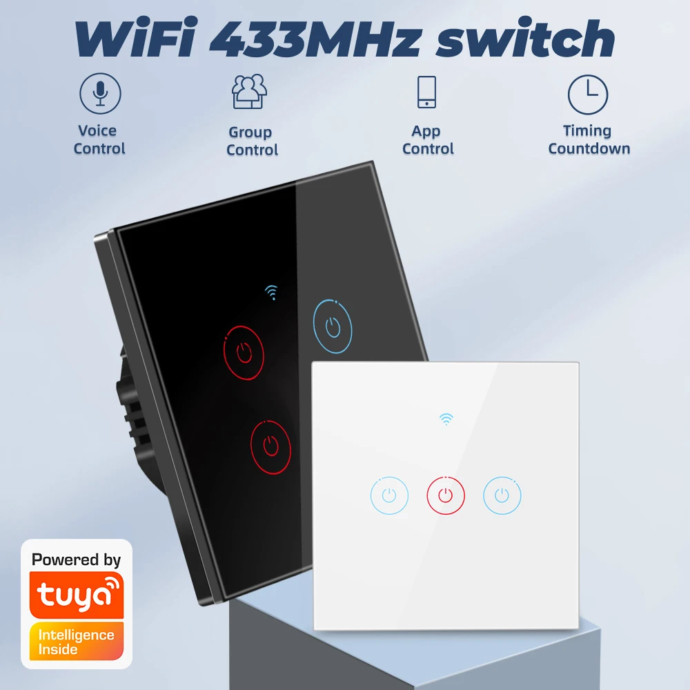 Рабочая частота 433 МГцAC 110V-240V 60HZ/50HZПодключение: провод под напряжением и нейтральный проводМакс. Ток нагрузки: 5АМаксимальная мощность: 3-500 Вт/всегоСтандарт Wi-Fi: 2,4 ГГц 802,11 b/g/nНазвание приложения: Tuya Smart/Smart Life