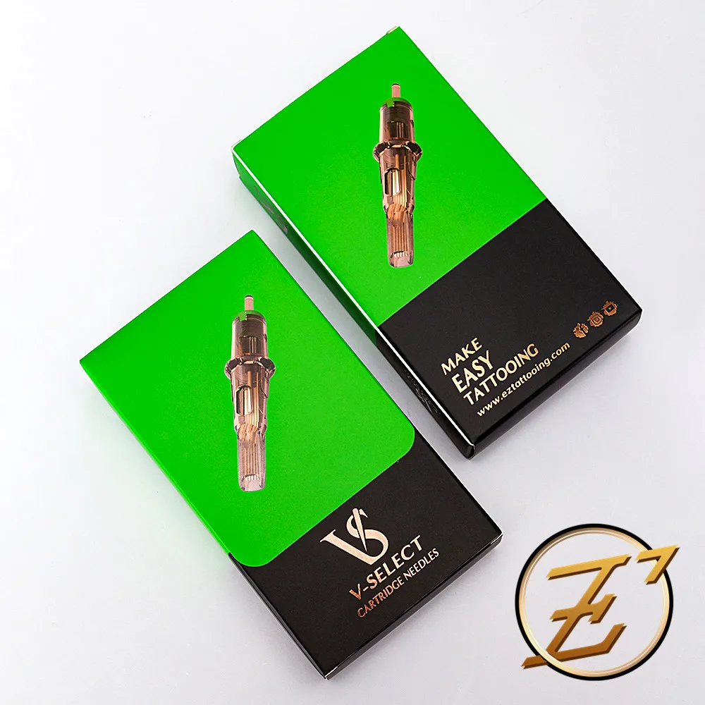 Оснащенные v-образной системой, картриджи с v-отбором оснащены системой точного позиционирования и эластичной мембраной для создания экстремальных характеристик татуировок