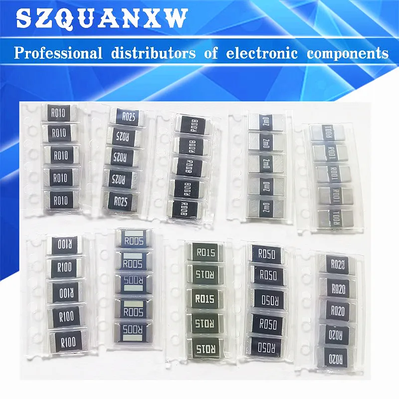 50 шт., сопротивление сплава 2512 SMD, 10 kindsx5 шт. = 50 шт. R001 R002 R005 R008 R010 R015 R020 R025 R050 R100