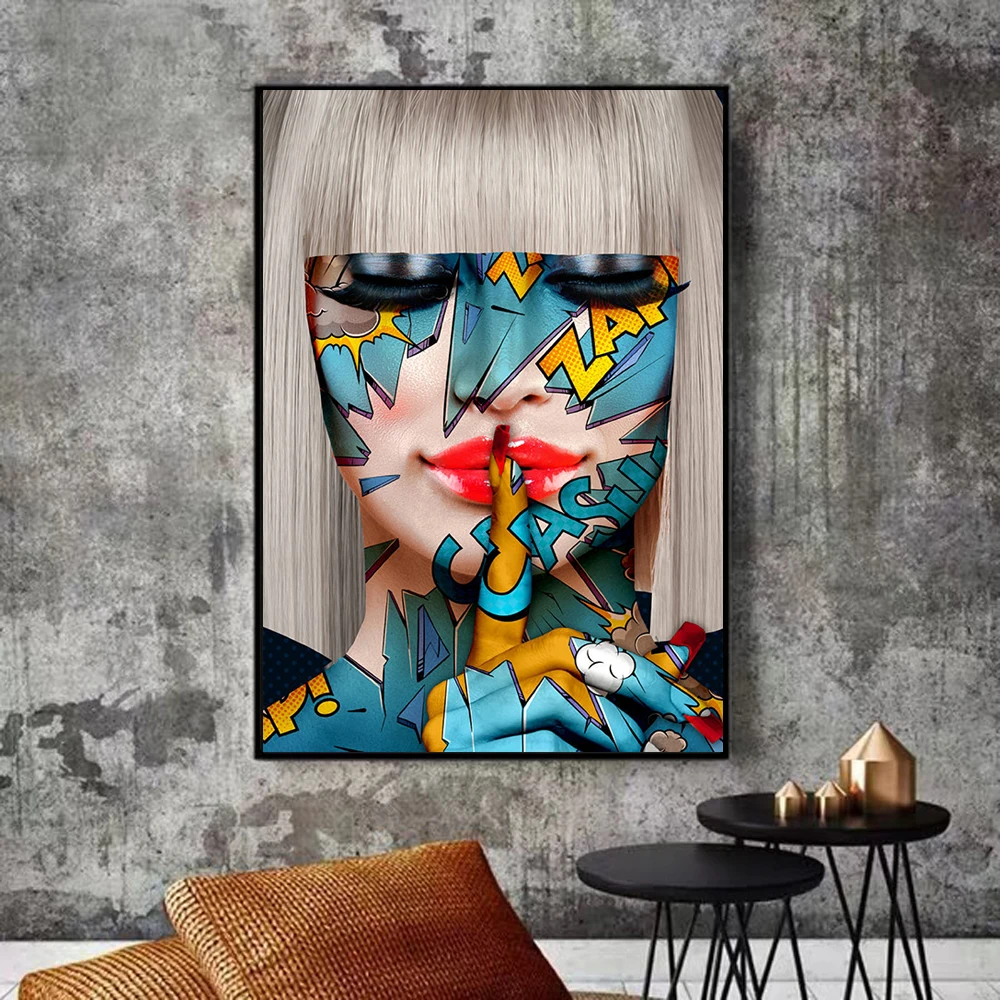Граффити красная губа Shush очки девушка искусство холст печать кар...