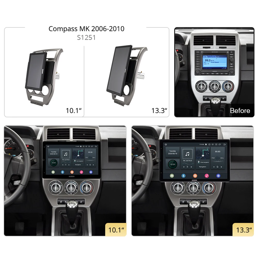 1920*1080 Android 10,0 Ownice 13,3 дюймов вращение 1 Din для Jeep Compass MK 2006 - 2010 радио авто GPS мультимедиаПодходит дляДля Jeep Compass MK 2006 - 2010 Если оригинальное автомобильное радио имеет функцию ниже, совместим ли блок Ownice Head?* Вариант 1-кабель XC251A, поддержка: управление рулевым колесом; Открытие двери дисплея, обратная Направляющая линия, информация о режиме автомобиля.* Опция 2-кабель XC251B, поддержка: Управление рулевым колесом; Открытие двери дисплея, обратная Направляющая линия, информация о режиме автомобиля; Оригинальный серийный усилитель.Внимание:Приведенная выше информация только для справки, иногда она может не быть совместима с некоторыми автомобилями, потому что автомобили производятся в разных странах в разных летних вариантах, спасибо за понимание.Блок Ⅲ: автоматический поворотный Головной блок10,1 дюймов K3-PX5 : Android 10,0 | PX5 | 8 ядро | 2 Гб + 32 ГБ, | 2.5D + TN | 1024*600 | Радио TEF7786 | Усилитель TDA738813,3 дюймов K3-PX5 : Android 10,0 | PX5 | 8 ядро | 2 Гб + 32 ГБ, | 2.5D + IPS | 1920*1080 | Радио TEF7786 | Усилитель TDA738810,1 дюймов K3-PX6 : Android 10,0 | PX6 | 2xCortex-A72 + 4xCortex-A53 | 4 Гб + 64 Гб | 2.5D + Nano + IPS | 1280*720 | Радио TEF6686 | Усилитель TDA7851L13,3 дюймов K3-PX6 : Android 10,0 | PX6 | 2xCortex-A72 + 4xCortex-A53 | 4 Гб + 64 Гб | 2.5D + Nano + IPS | 1920*1080 | Радио TEF6686 | Усилитель TDA7851L