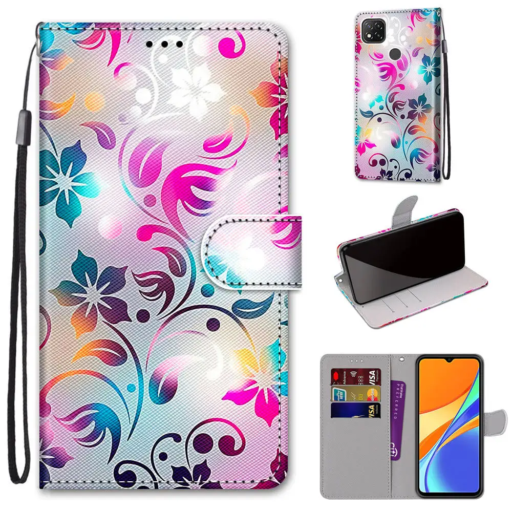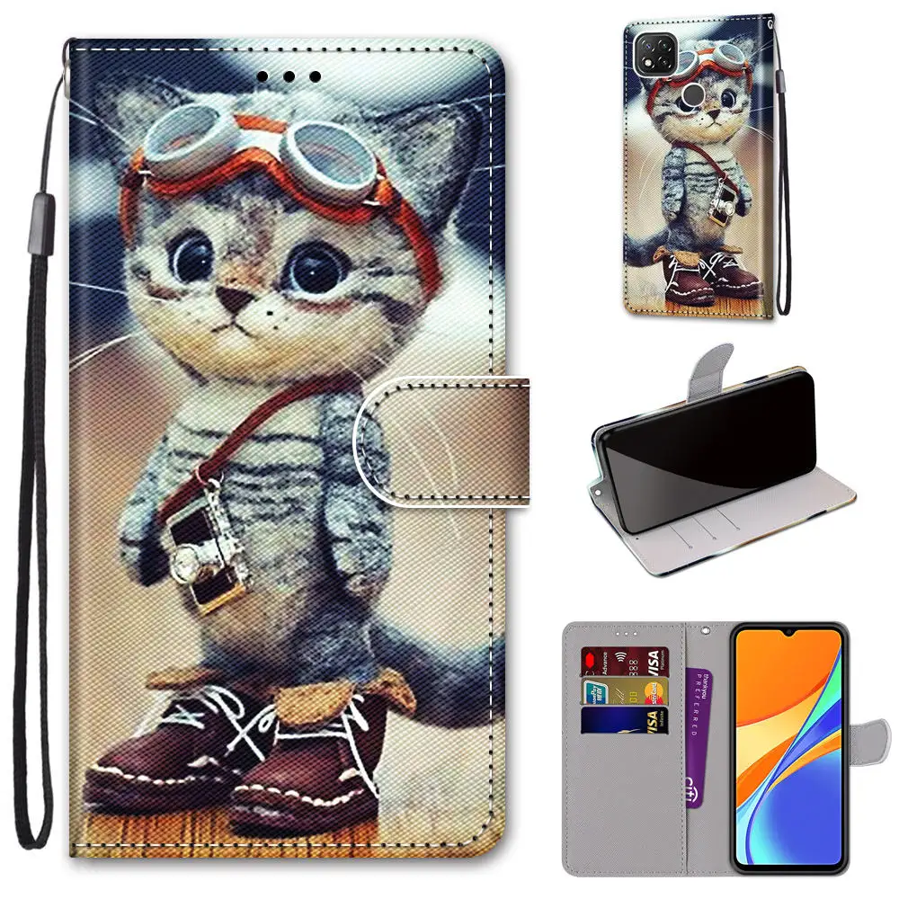 StyleAnimal Cat Flower pattern Wallet Flip Case For Xiomi Redmi note 9 9S