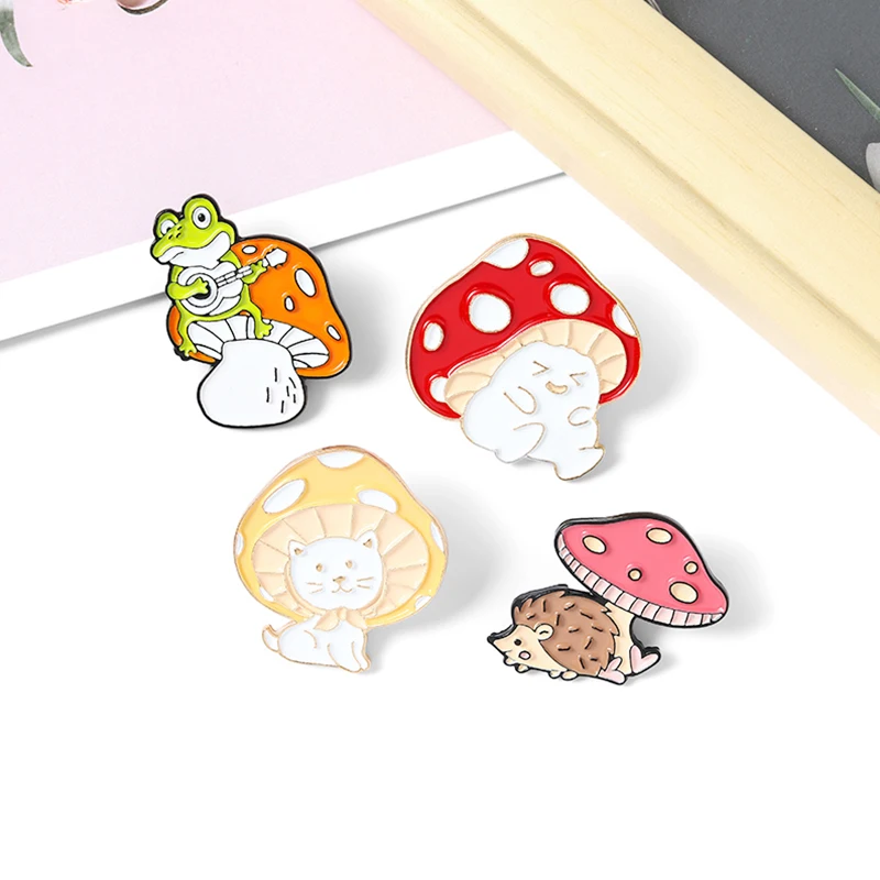 Маленькие животные грибы лес кошка эмалированные Броши милый мультя...