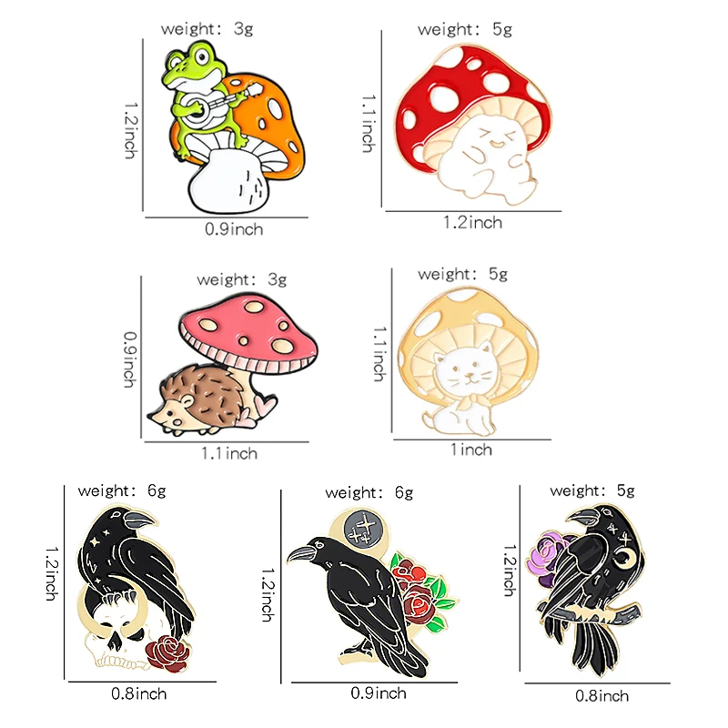 Милые эмалированные булавки в форме грибов, лягушки, ежика, кролика, гриба, одиночный цветок, череп, ворона, искусственный подарок для друзей