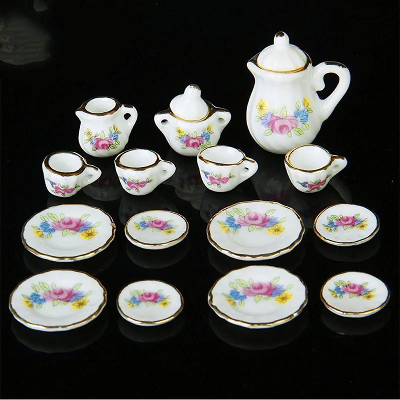 1:12 Кукольный дом домик для собственной сборки мини Керамика готовой продукции модель подарок игрушка 15 Чай Набор посуды набор посуды