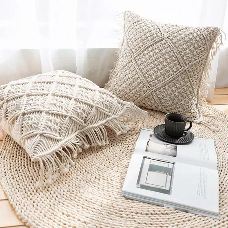 Материал: хлопок, холст и кисточка Описание: не включая наполнение, только подушечки Спецификация подушки: размер подушки 45х45см/30смх50см Изделия ручной работы могут отличаться от 2 до 3 см (около 0,8дюйма ~ 1,2 дюйма). Инструкция по уходу: Машинная или ручная стирка, не отбеливать, гладить при необходимости Использование: подушка, подушка, чехол для дивана, наволочка, наволочка и подушки, декоративные подушки и подушки на заказ