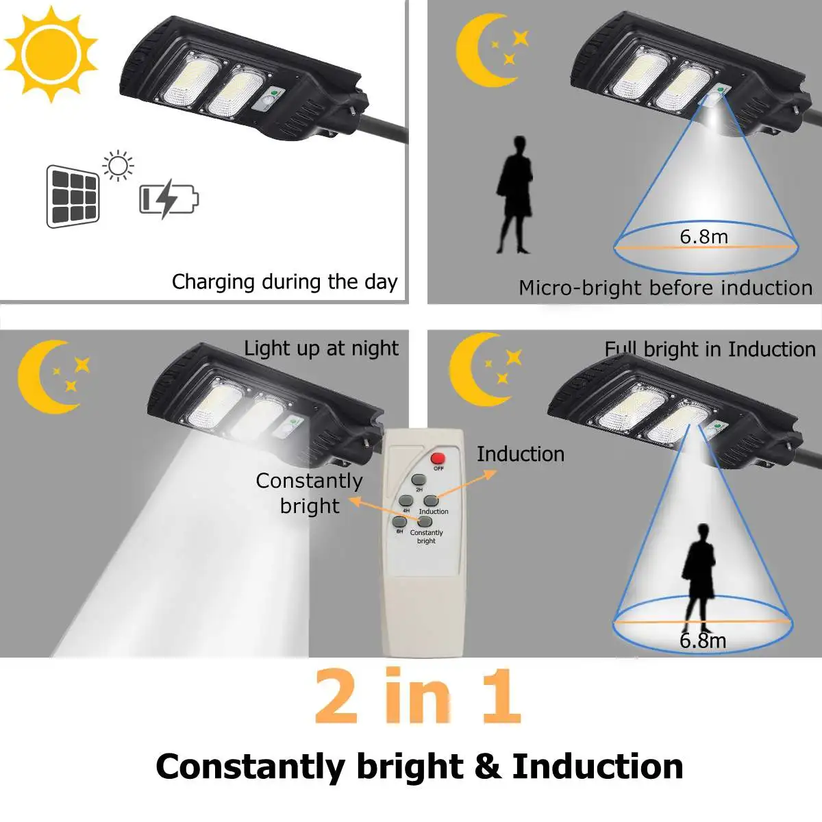 150W300W450 Вт Светодиодный уличный фонарь на солнечной батарее настенные садовые фонари Водонепроницаемый наружное освещение с пультом дистанционного управления от заката до рассвета движения PIR Сенсор