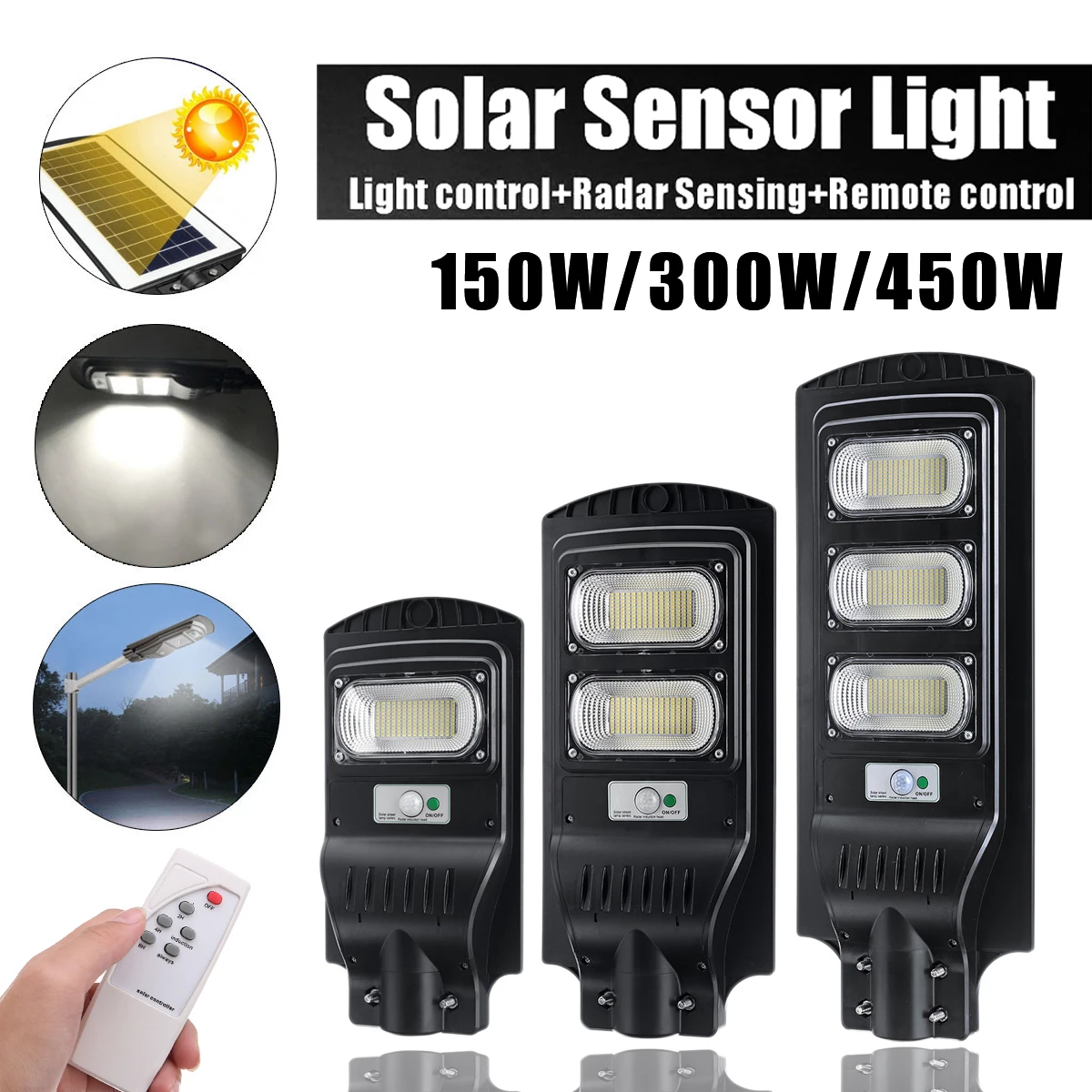 1x150/300/450W Солнечный уличный светильник