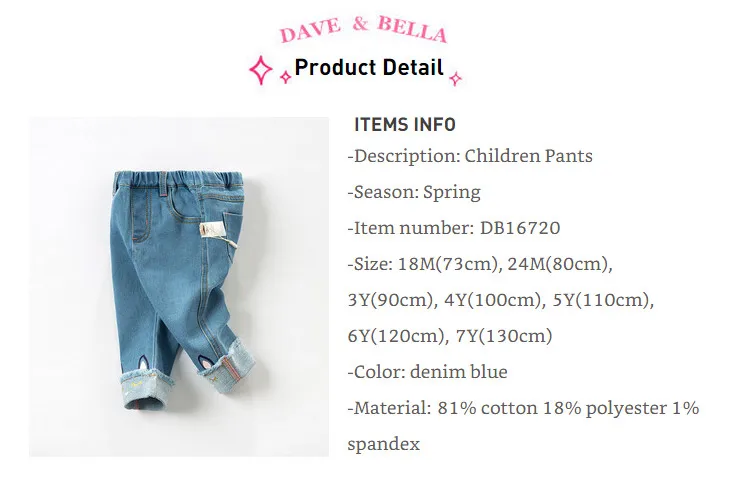 DB16720 нижнее белье в стиле бренда dave bellaвесна, сказочное детское платье детское модное платье для девочек с картинкой из мультфильма, Брюки с карманами для детей; Длинные детские штаны для малышей брюки для детей ясельного возраста