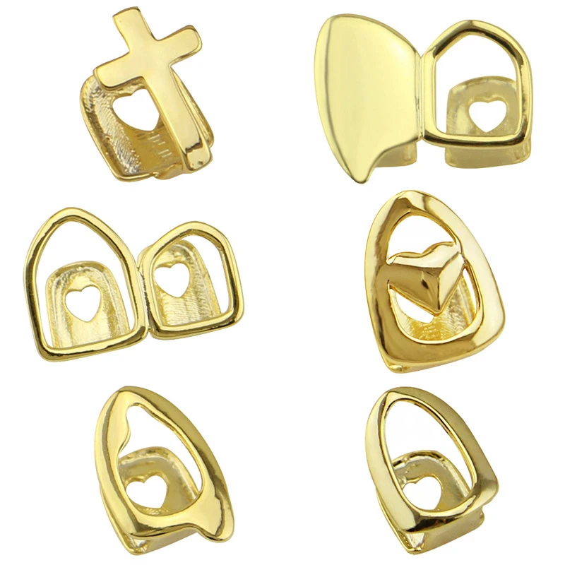Хип-хоп золотые зубы, пустотелые двойные серебряные колпачки для зу...