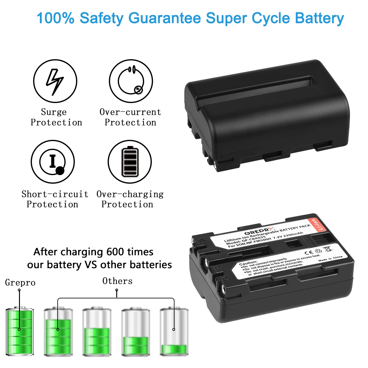 2200 мАч, NP-FM500H NP FM500H Батарея + Батарея Зарядное устройство с USB и Тип C порт для Sony NP-F550 NP-FM50, A200, A200K, A200W