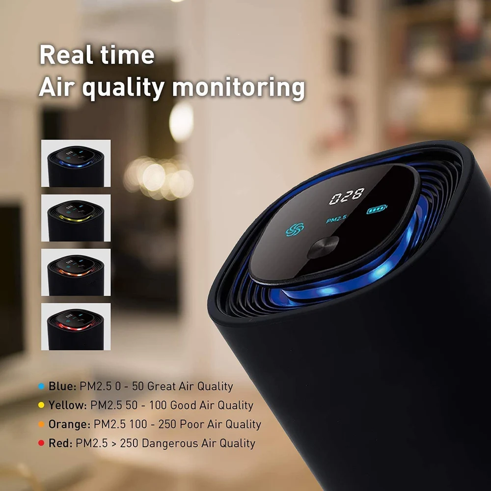 Входная мощность: 5 В/1 А Литиевая батарея: 1800 мАч Ultraviolat длина волны светодиода: 260-280nm Выход отрицательных ионов/анионов: 15 миллионов Кол-во светодиодов: 2 шт. USB кабель: USB-C Характеристики: дисплей PM 2.5 Срок службы батареи: 240 минут Материал: АБС + резиновое масло Размер: 80x80x126мм Срок службы лампы: 10000 часов Сертификат: UL/CARB/CP65/ROHS/CE/FCC Вес: 452 г