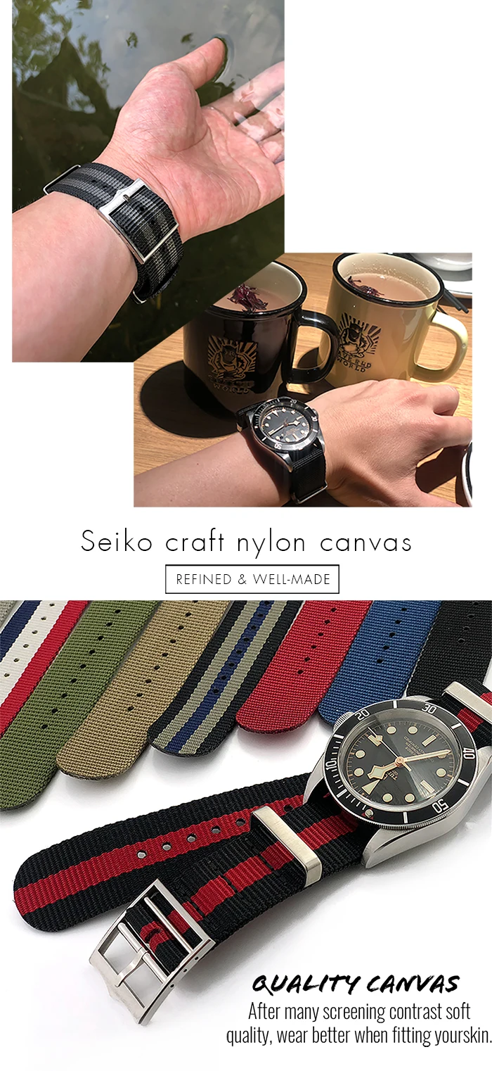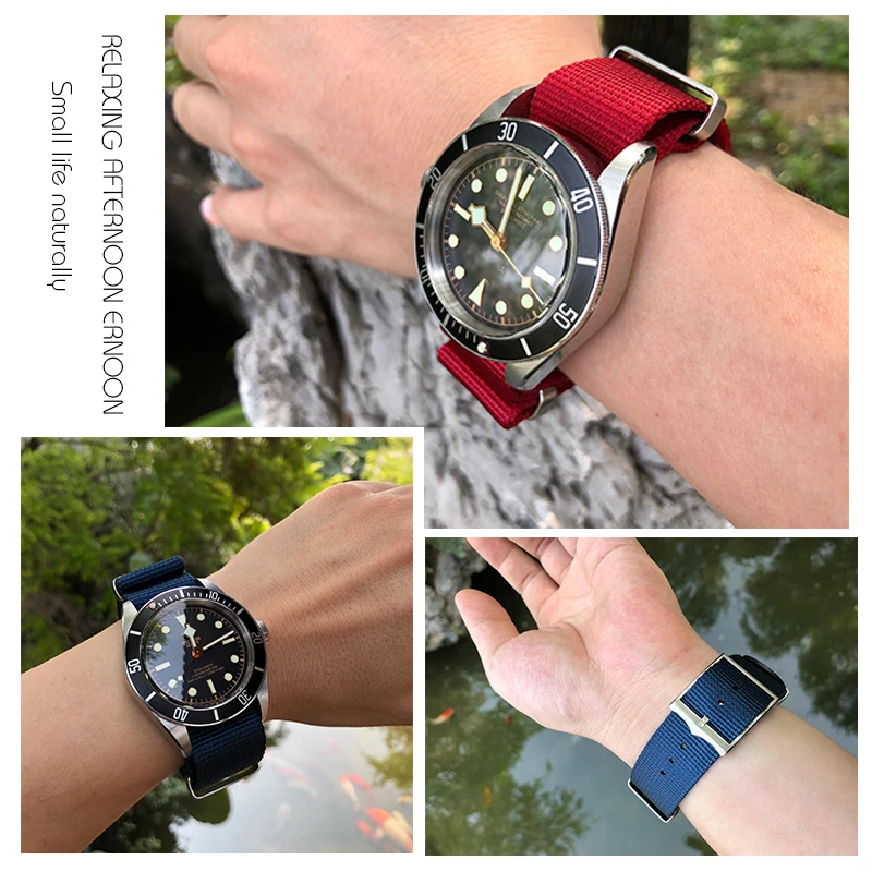 Тканый нейлоновый ремешок для часов, 20 мм, 22 мм, черный, синий, ремешок для часов Tudor Black Bay, Rolex, Omega, Seamaster 300, Seiko Tissot Citizen