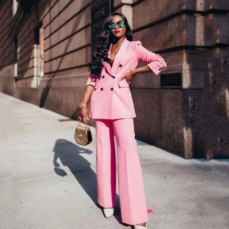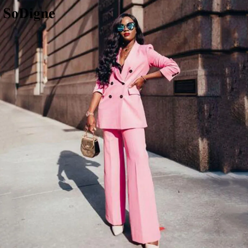 Женские Брючные костюмы из 2 предметов doworthy, приталенные костюмы из розовых брюк, женский летний костюм, Блейзер, комплект для женщин, блейзер, женский костюм