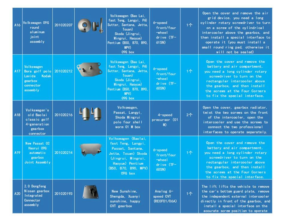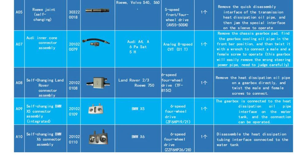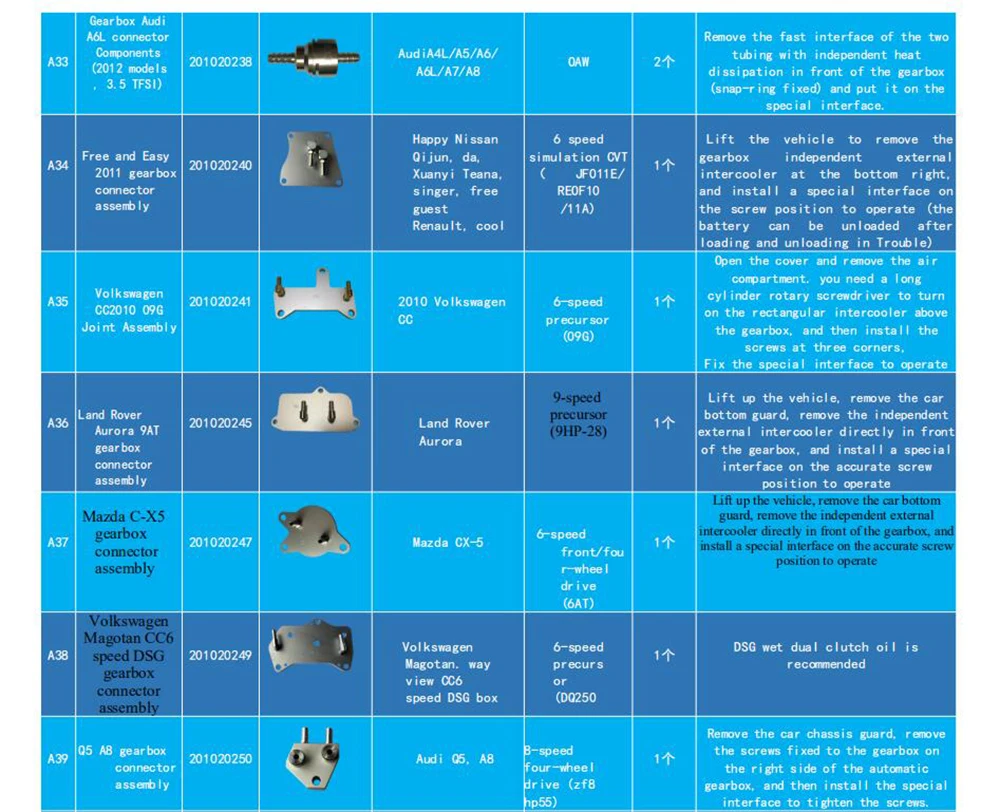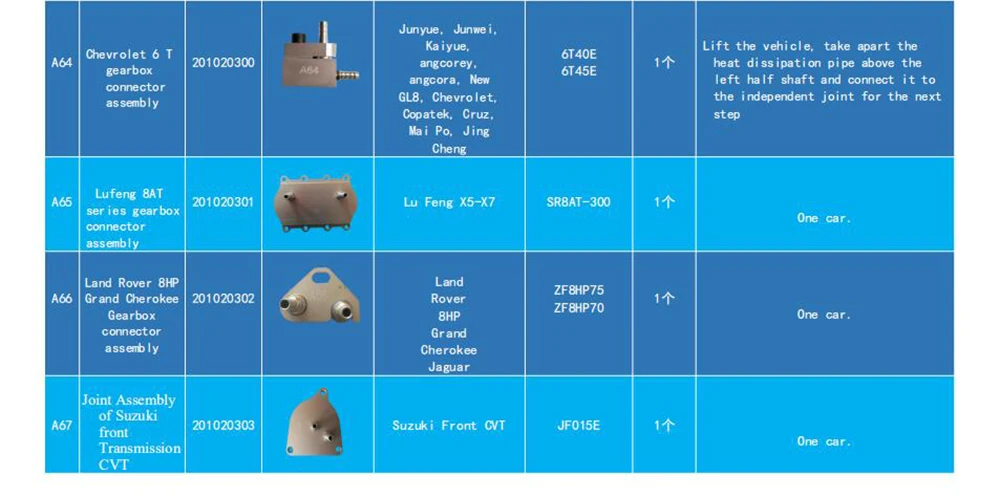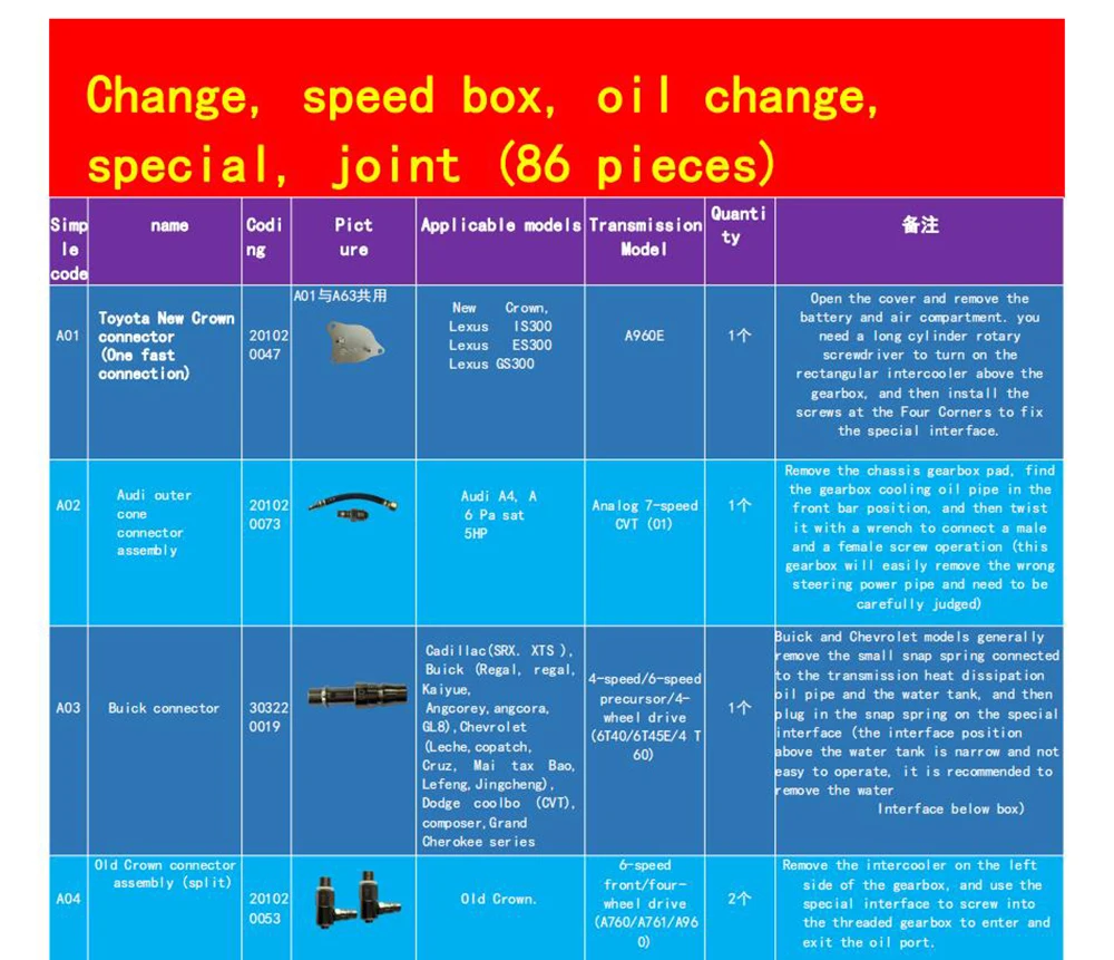 Всего 116 штук для 86 типов разъемов коробки передач