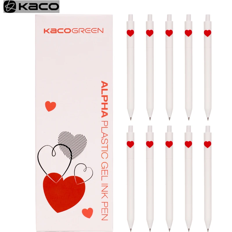 Ручка Kaco LOVE гелевая ручка, знак, 0,5 мм, черные чернила для ручки, шариковая ручка с белым сердечником, прочная ручка для подписи, АБС-пластик, гладкие чернила, канцелярские принадлежности