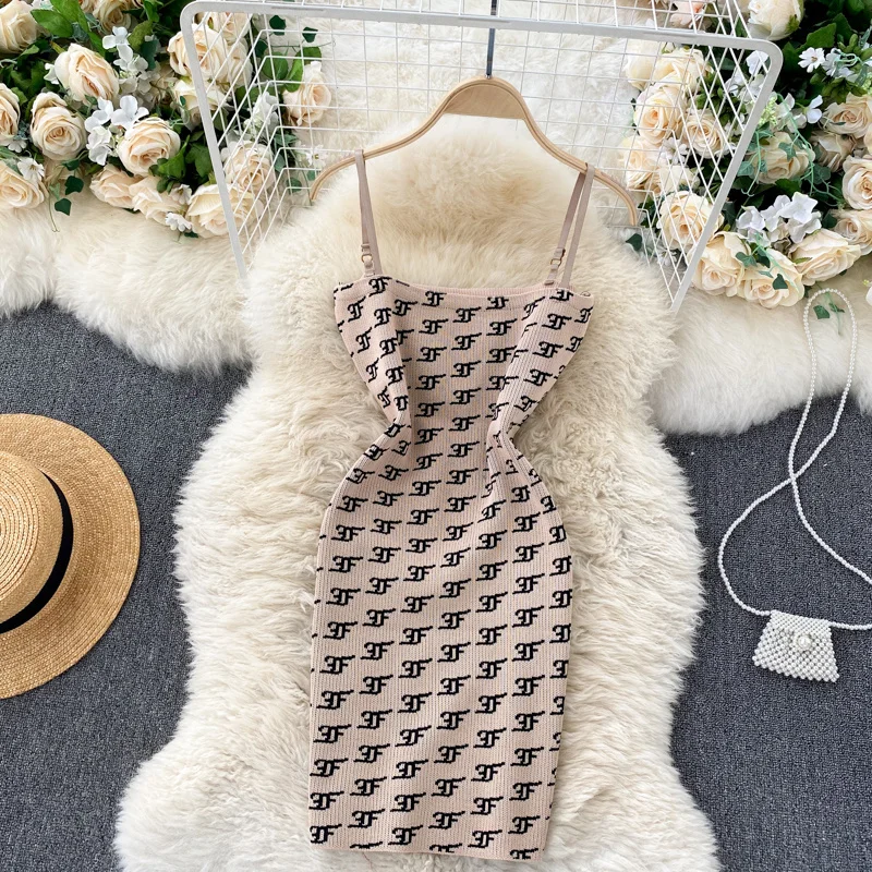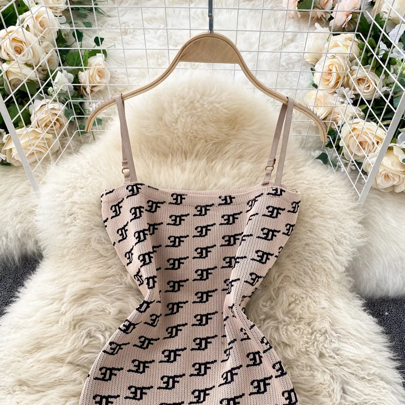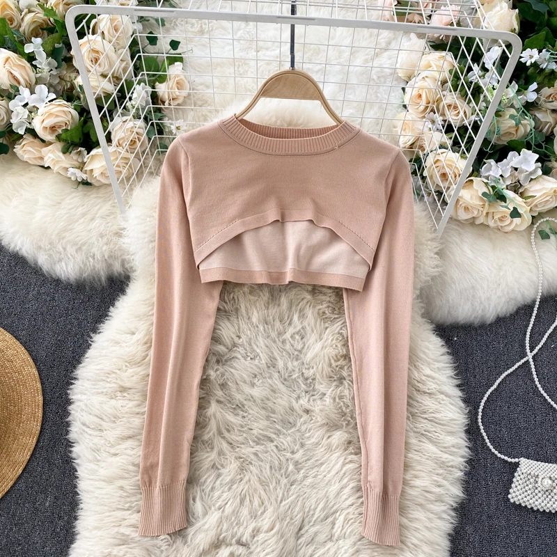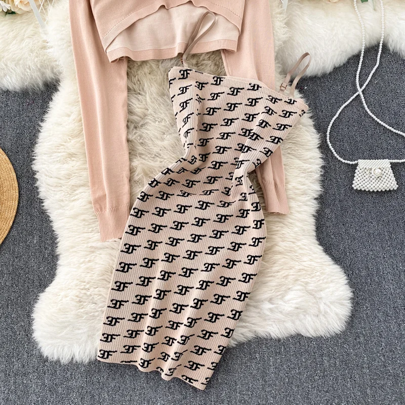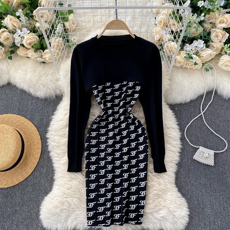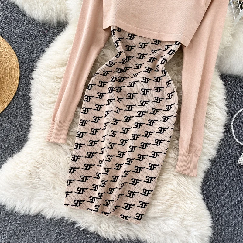Женский вязаный комплект из 2 предметов Foamlina, в стиле ретро, с круглым вырезом и длинным рукавом, укороченный свитер на бретелях, облегающее мини-платье, костюм на осень-зиму