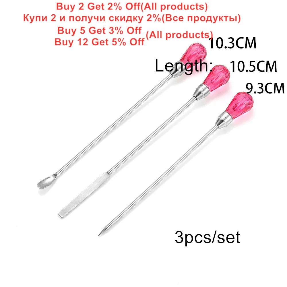 3 шт./компл. Muddler Poke игольчатый инструмент-ложка, набор для бусин, профессиональные силиконовые УФ-полимерные формы, эпоксидные украшения, инструменты для дизайна ногтей