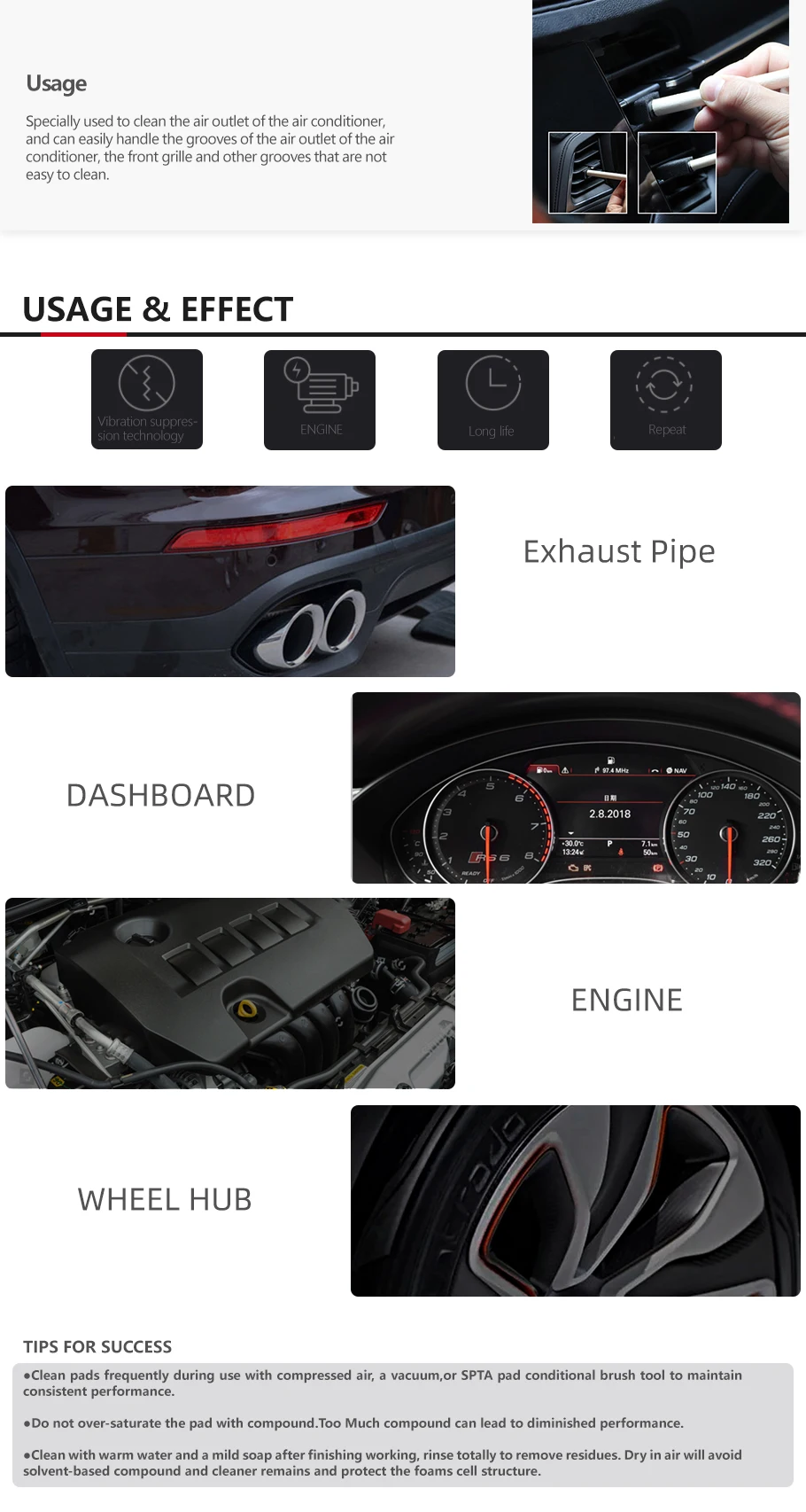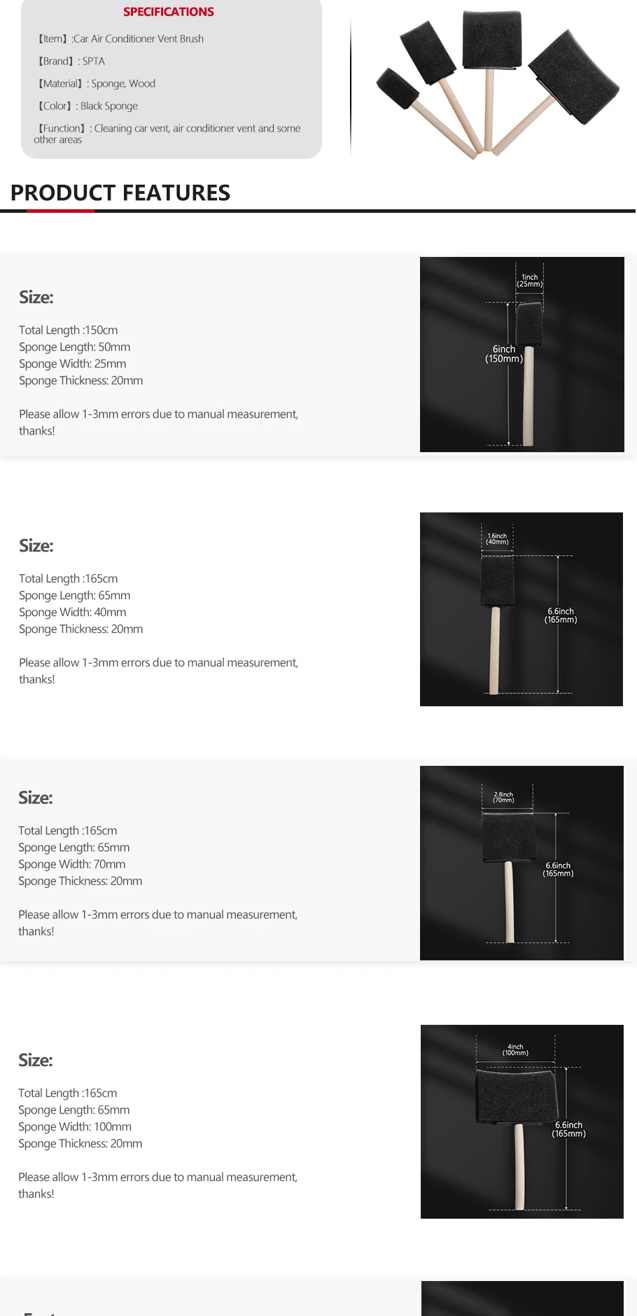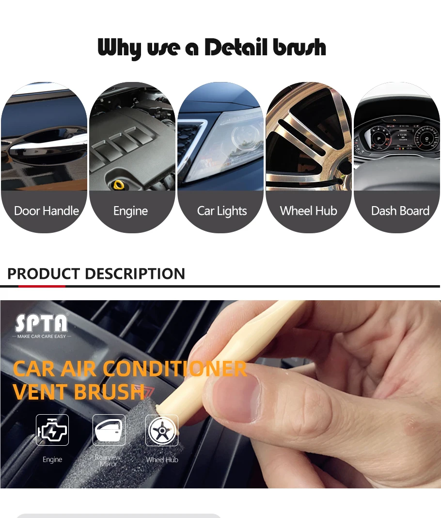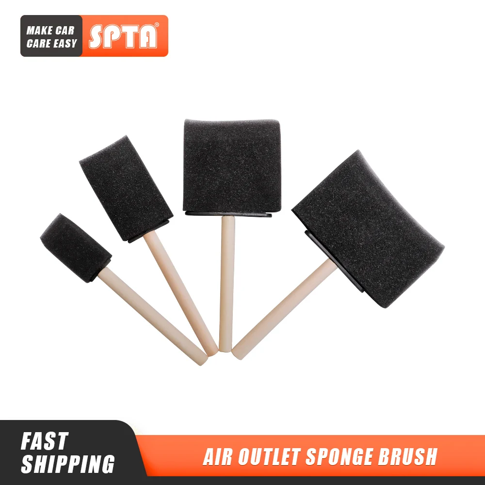 Щетка SPTA для вентиляционного отверстия автомобильного кондиционера, щетка для очистки жалюзи, щетка для очистки автомобиля, деревянная ручка, губка
