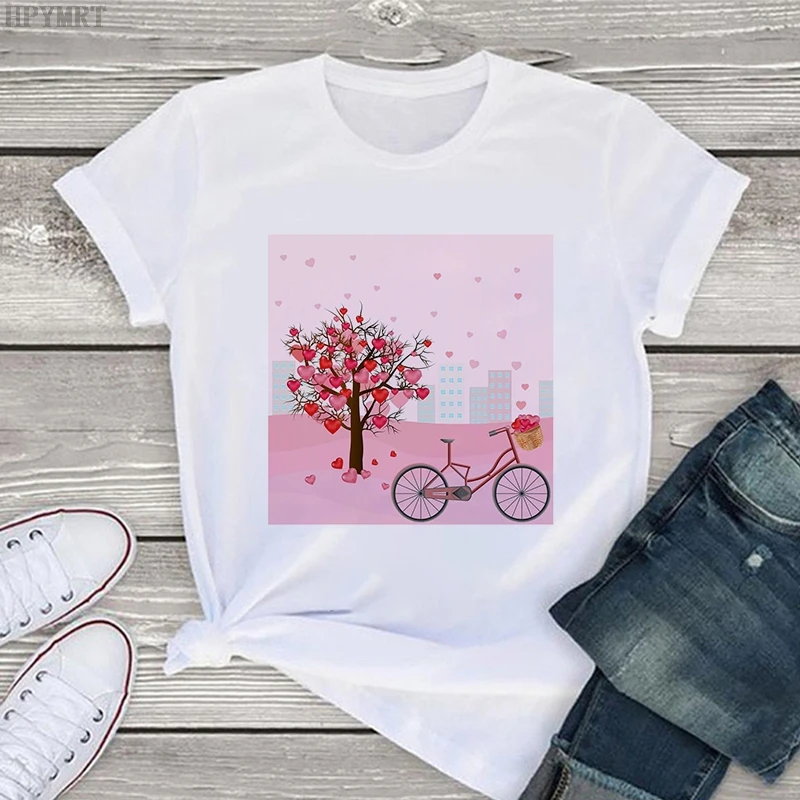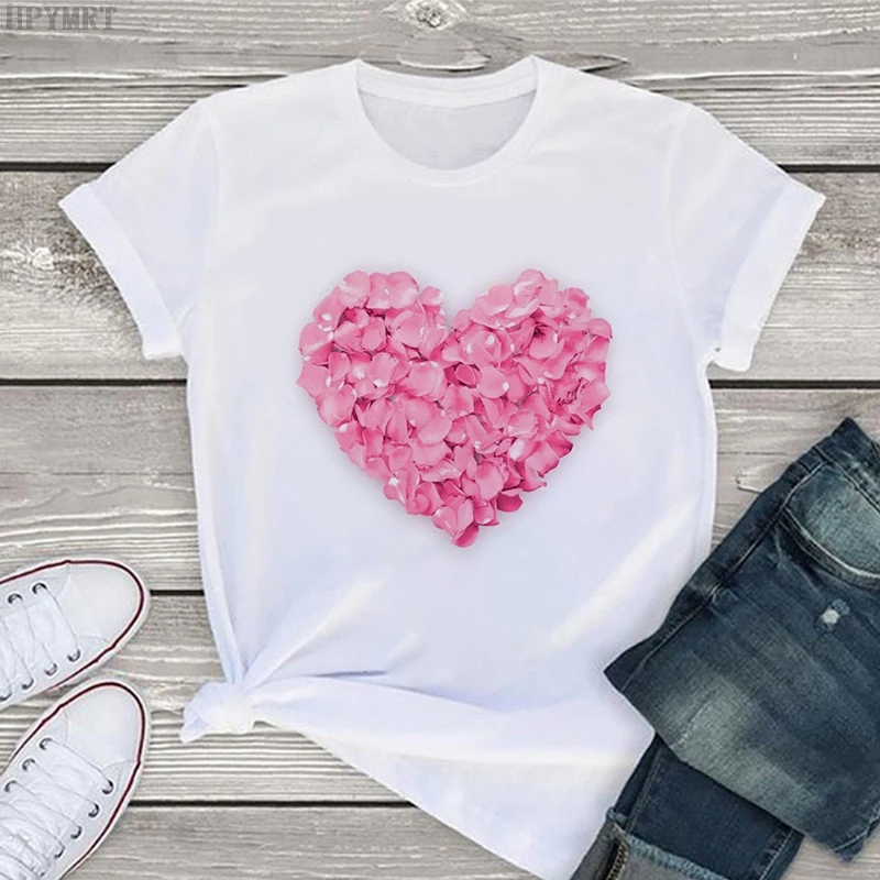 Модная женская футболка с принтом в виде розовых лепестков сердца, ...