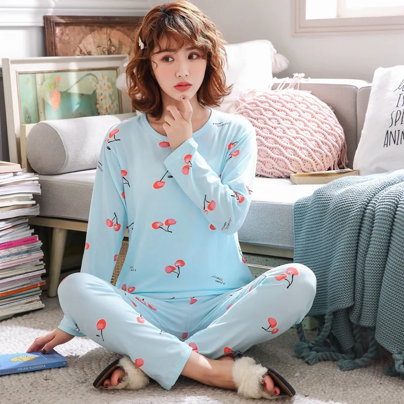 Мультяшные пижамы, Хлопковая пижама для женщин, зима 2021, пижама для сна и отдыха, Топ с длинным рукавом + длинные брюки, Женский пижамный комплект