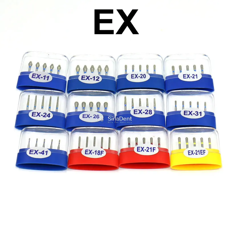10 коробок, Стоматологические алмазные боры с зернистостью для раннего шлифования зубов и подготовки, боры серии EX