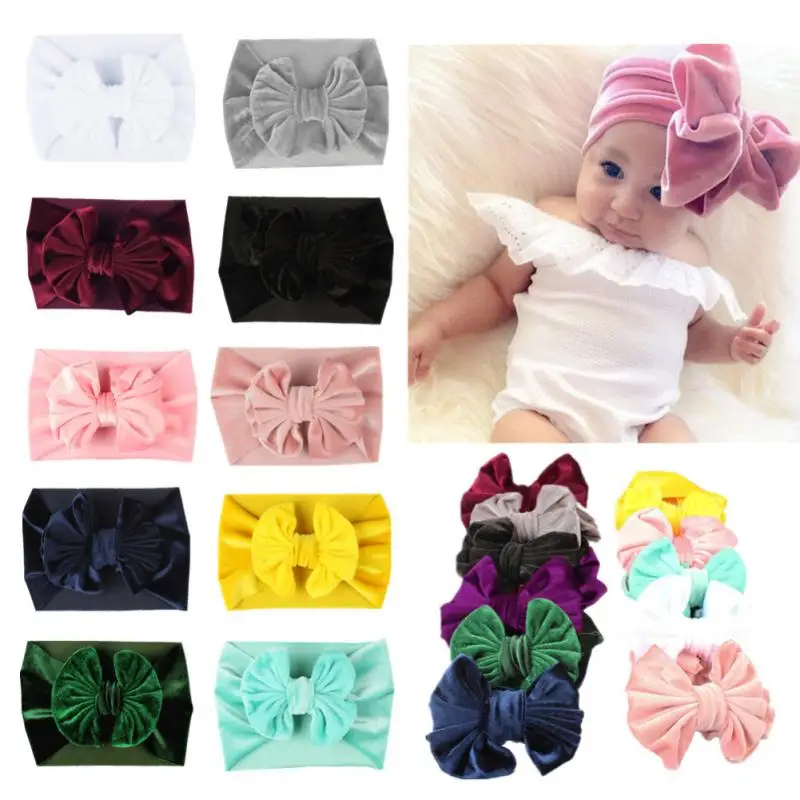 Детская чалма с цветочным узором и бантом для новорожденных; Эластичный; Золотая Бархатная повязка на голову для маленьких девочек Однотонные Цвет повязка на голову, повязка на голову в подарок