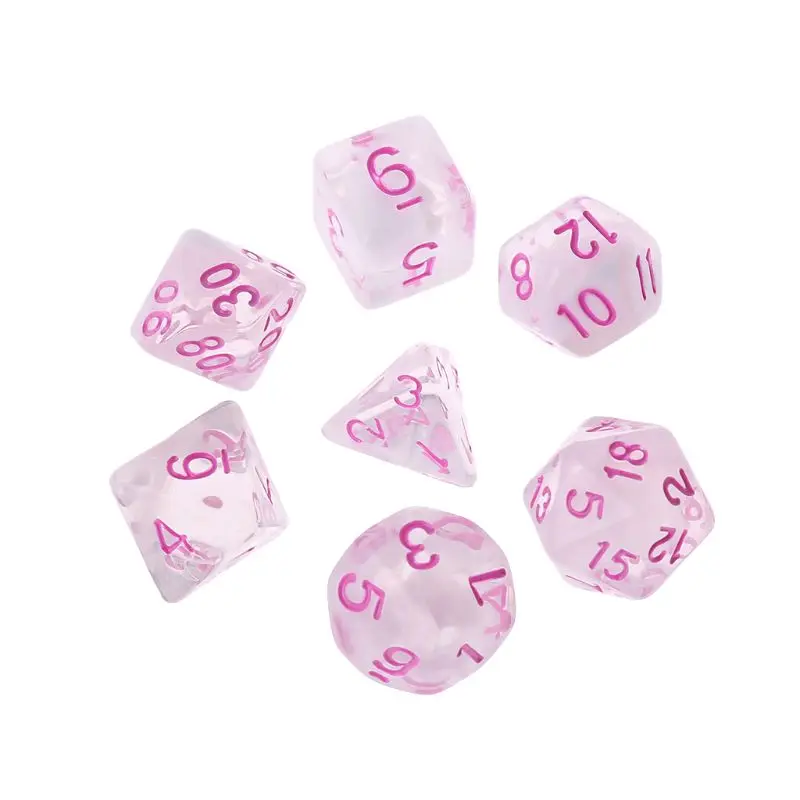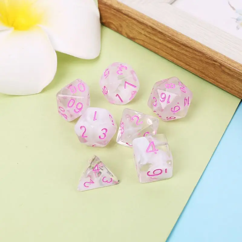 7 шт./компл. новые игровые кости прозрачные модные кубики многосторонние настольные игры вечерние игральные подарки многогранные черные/розовые