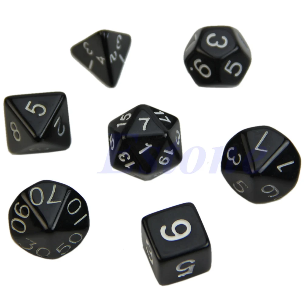 7 шт., черные игральные кости D4 D6 D8 D10 D12 D20 RPG