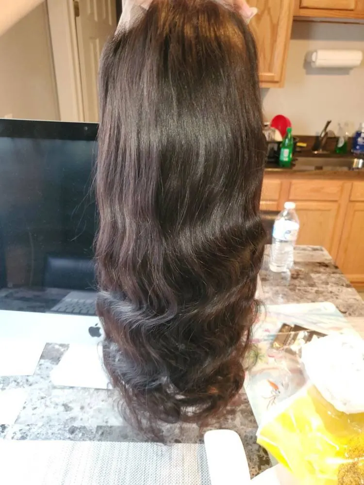 Этот продавец хорошо общался со мной, эти волосы-100% человеческие волосы 26 дюймов. Мне нравится мягкость волос. Не линяет, это очень отличный парик для покупки.