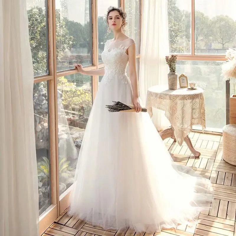 Свадебное платье из тюля с кружевной аппликацией, свадебное платье для невесты, атласное свадебное платье со шнуровкой