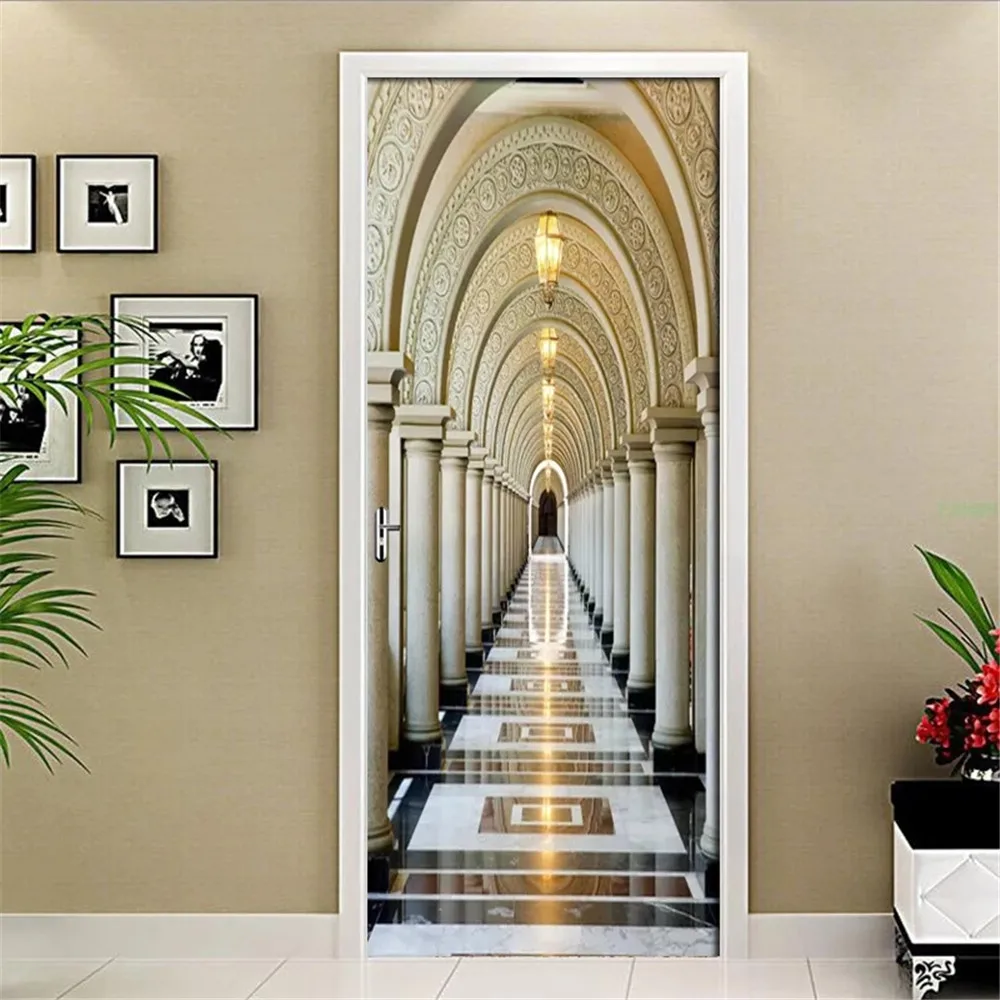 ПВХ водонепроницаемые самоклеящиеся дверные наклейки, персонаж, пейзаж, 3D фото, Настенные обои для гостиной, художественные декорации спальни, настенные наклейки