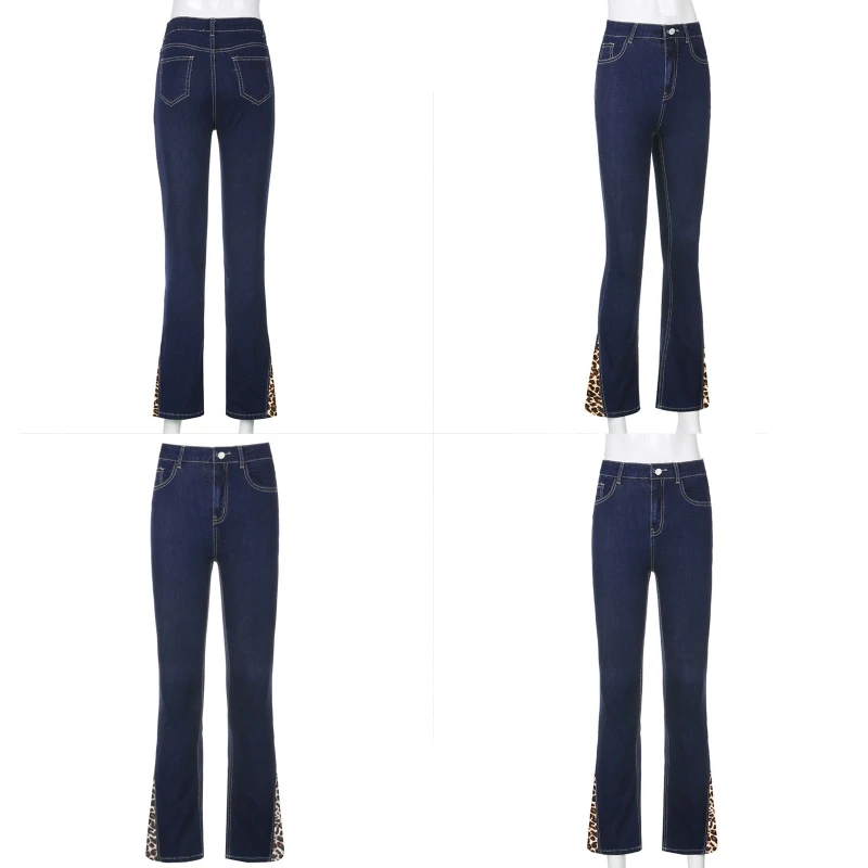 Женская обувь высокого качества с эластичной резинкой на талии, джинсы в винтажном стиле; Леопардовый принт пэтчворк тонкие джинсовые штаны в стиле Харадзюку; Повседневные длинные брюки для девочек уличная беспроводным доступом в Интернет