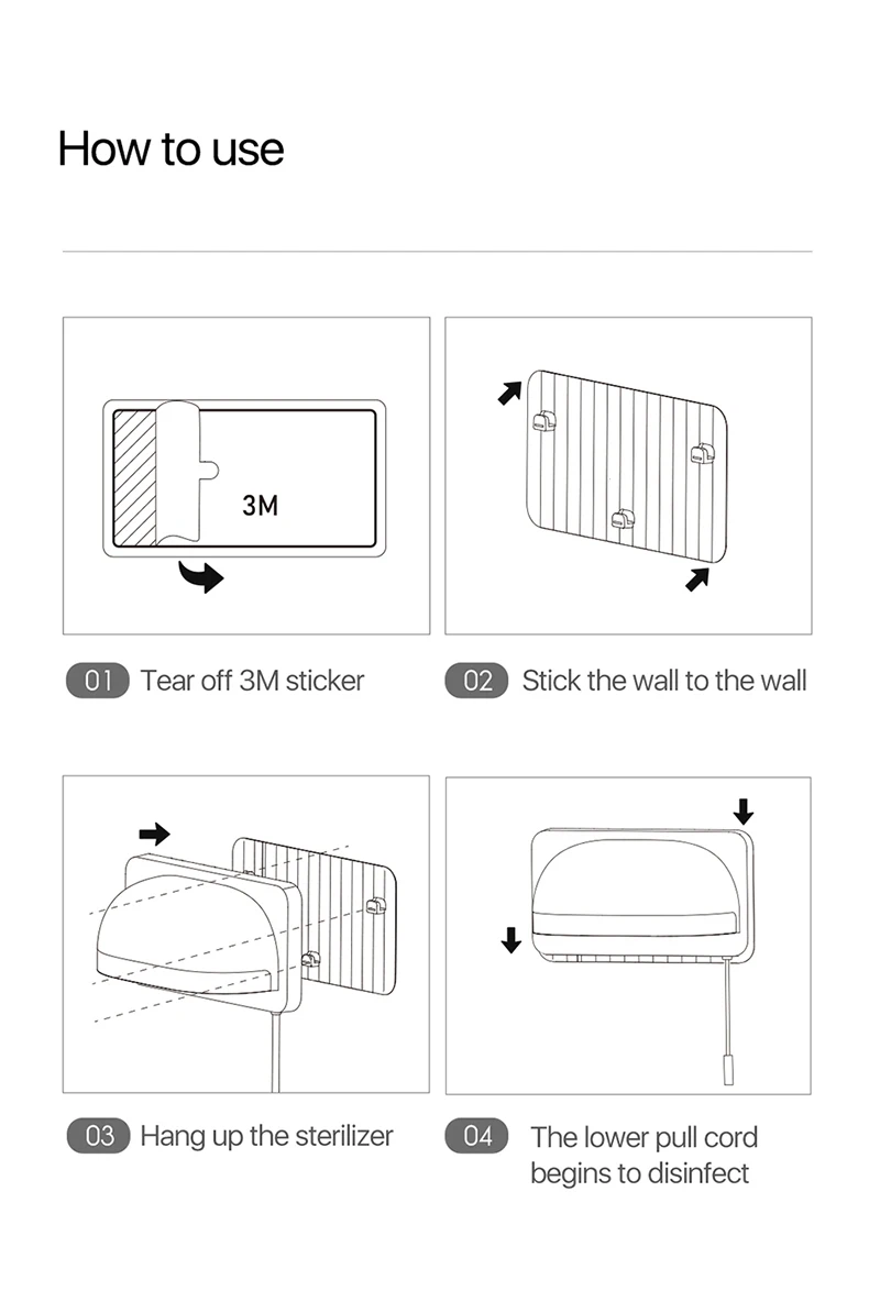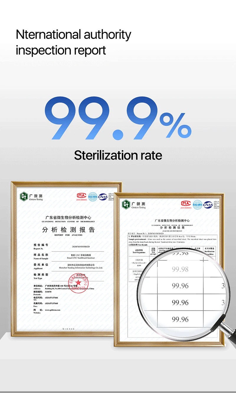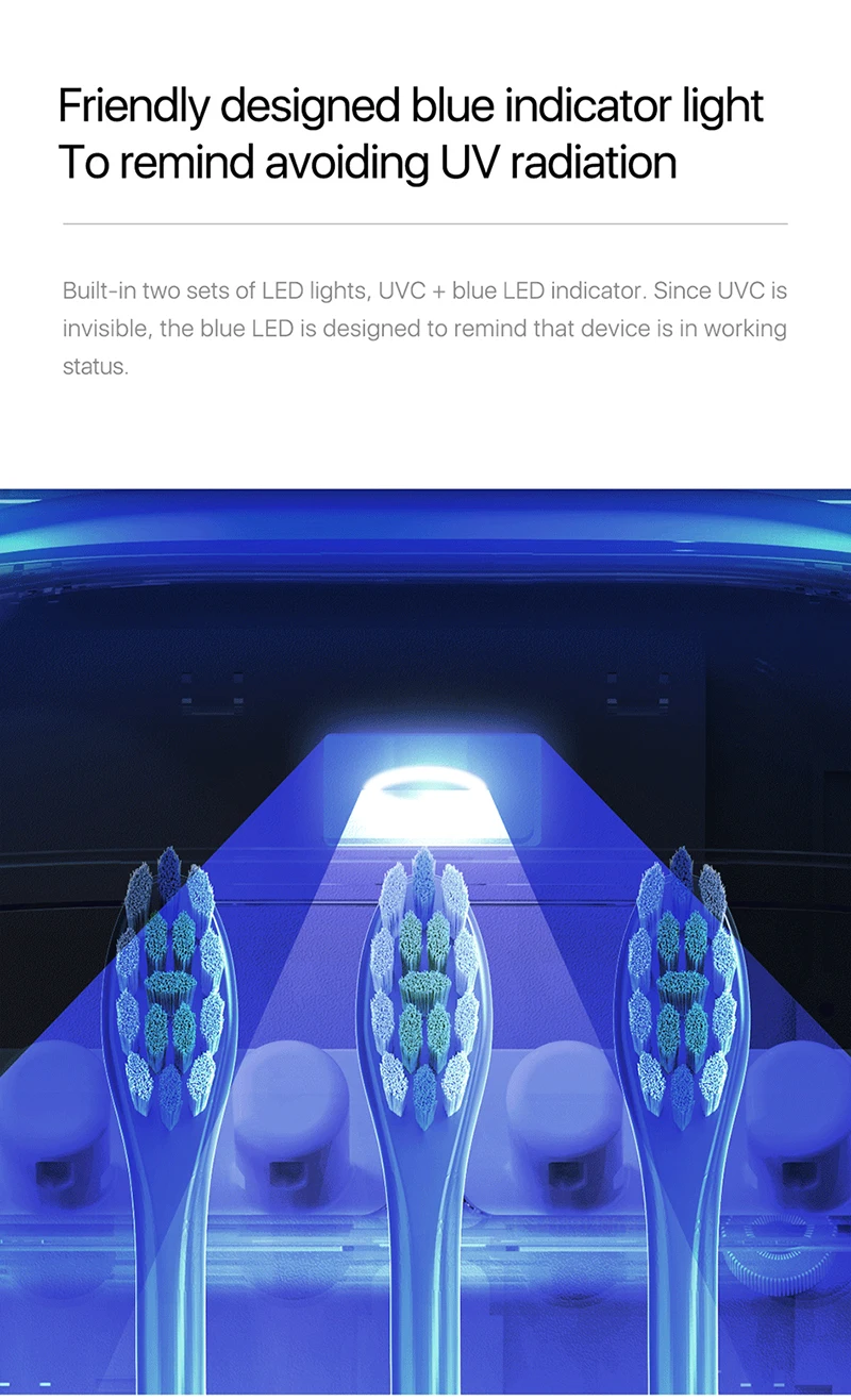 * UVC-LED безопасная стерилизация, скорость стерилизации до 99.99%.* Потяните веревку, легко управлять, может быть дезинфицирован, потянув его мягко* Может удерживать до 5 зубных щеток для семьи, из которых 3 положения используются для дезинфекции и 2 положения используются для хранения.* Дружелюбный синий световой светильник напоминает вам, чтобы избежать ультрафиолетового излучения.* Встроенный 1000 мА/ч, литий-ионный аккумулятор, зарядка для 2,5 h, используйте в течение 20 дней.