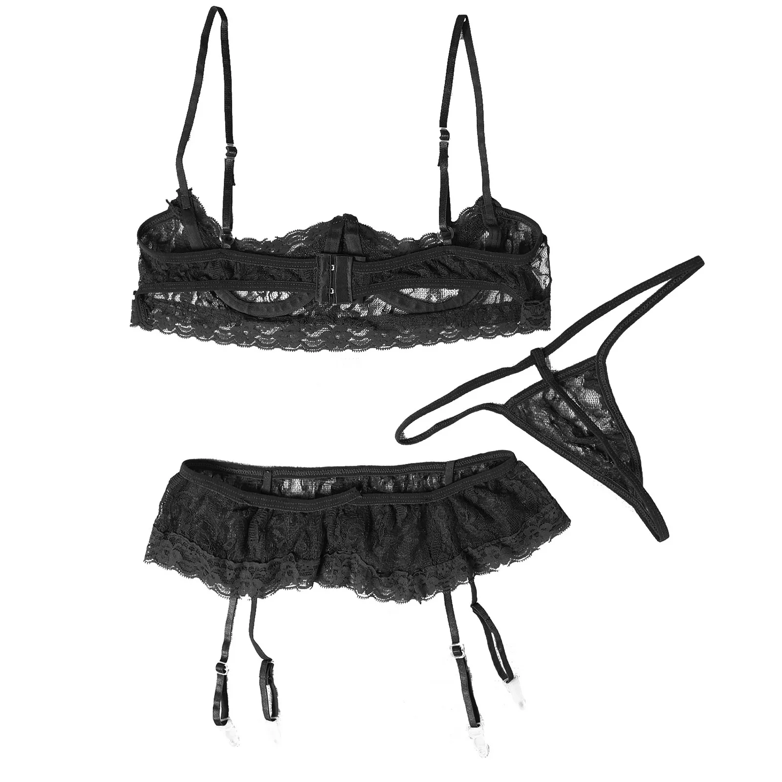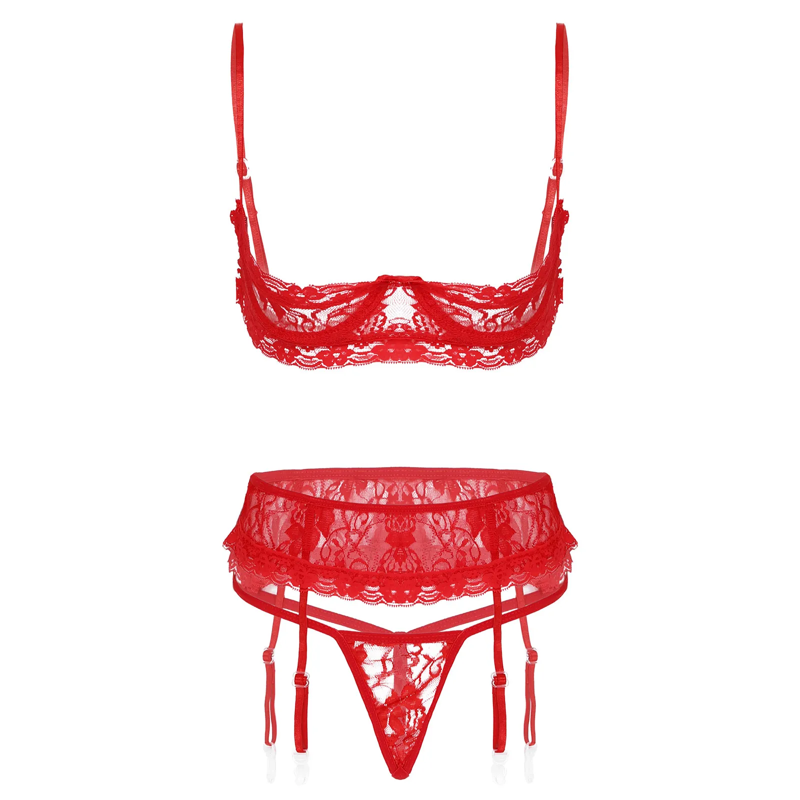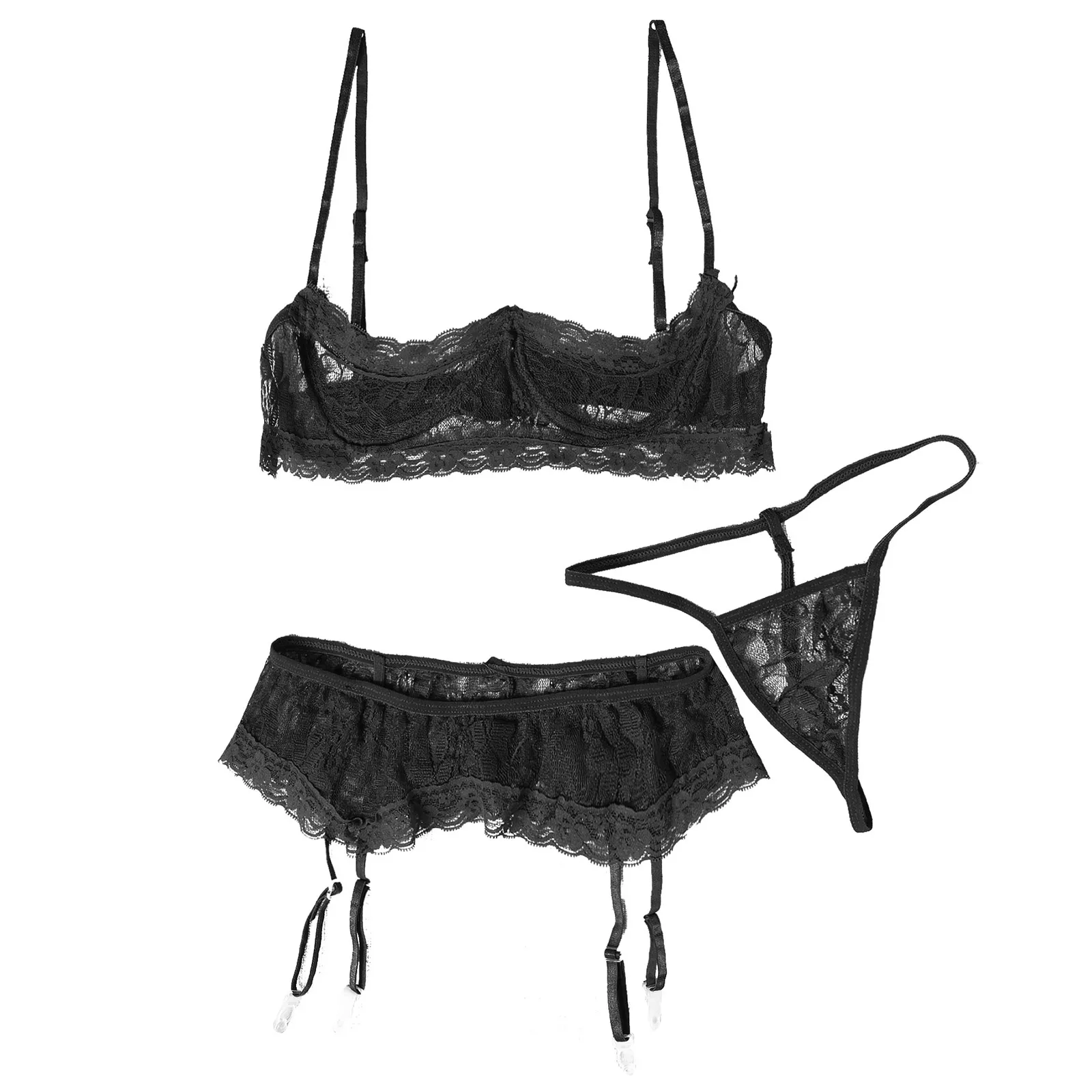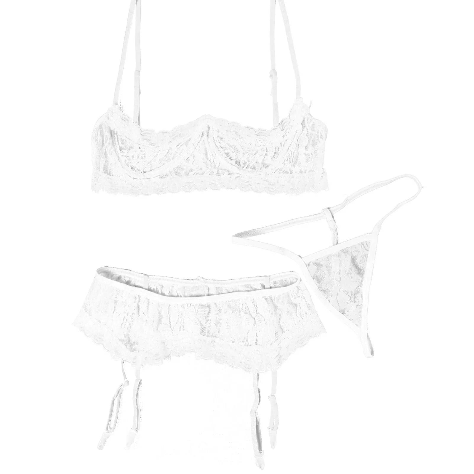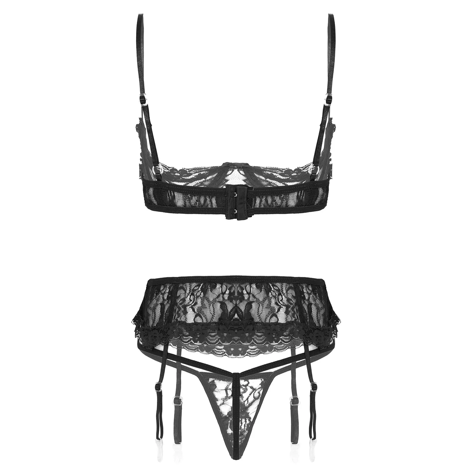 Особенности: Женский Прозрачный Кружевной Костюм из трех частей, нижнее белье, пижама. Комплект нижнего белья включает прозрачный кружевной бюстгальтер на косточках, стринги и подвязки. Изготовлен из высококачественного кружева, дизайн с открытой грудью делает вас привлекательной и привлекательной. Идеально подходит для свиданий, вечевечерние с нижним бельем, медового месяца, особых ночей и т. д. Пожалуйста, внимательно проверьте размер перед размещением заказа, ручная стирка в холодной воде.