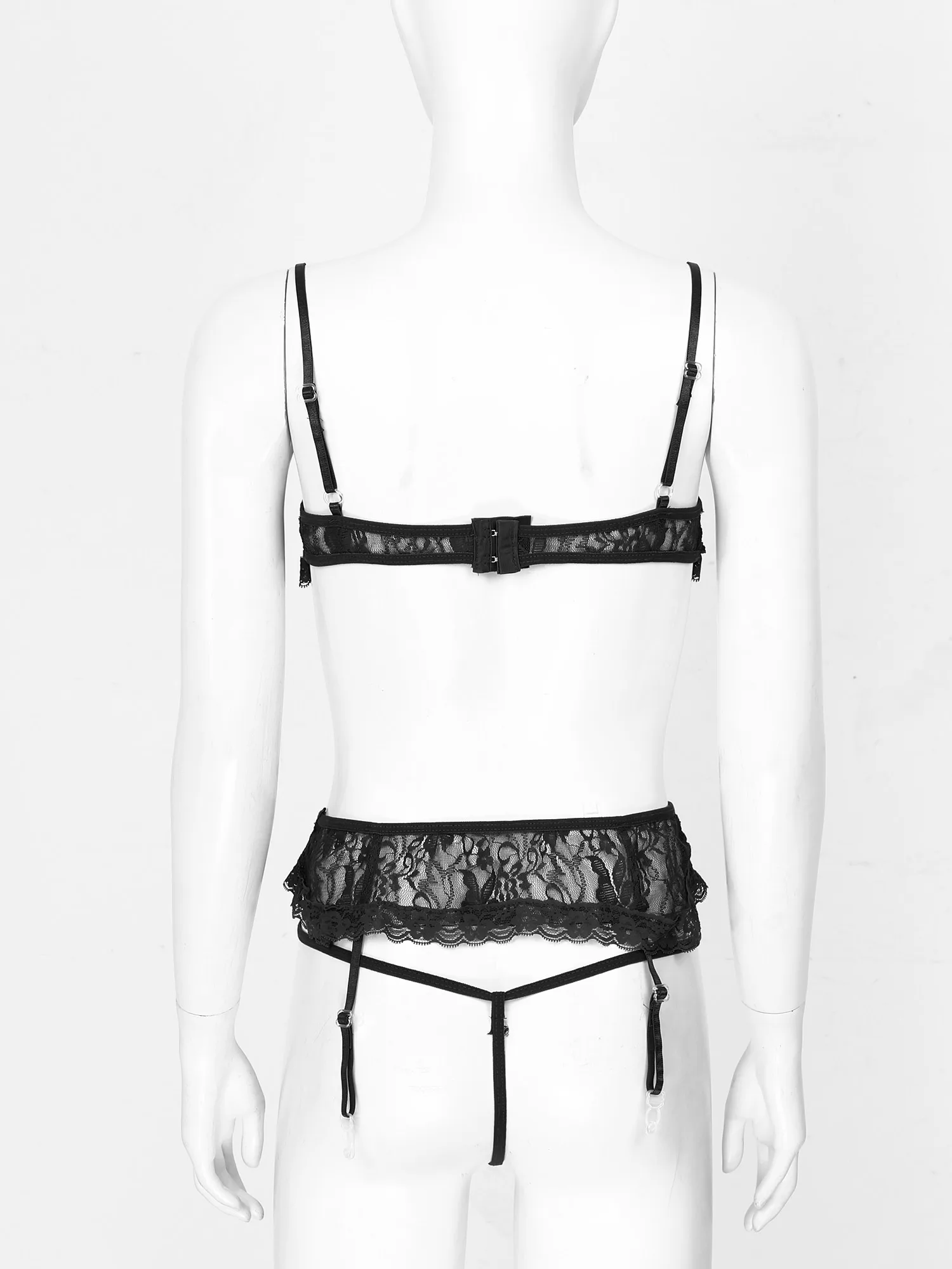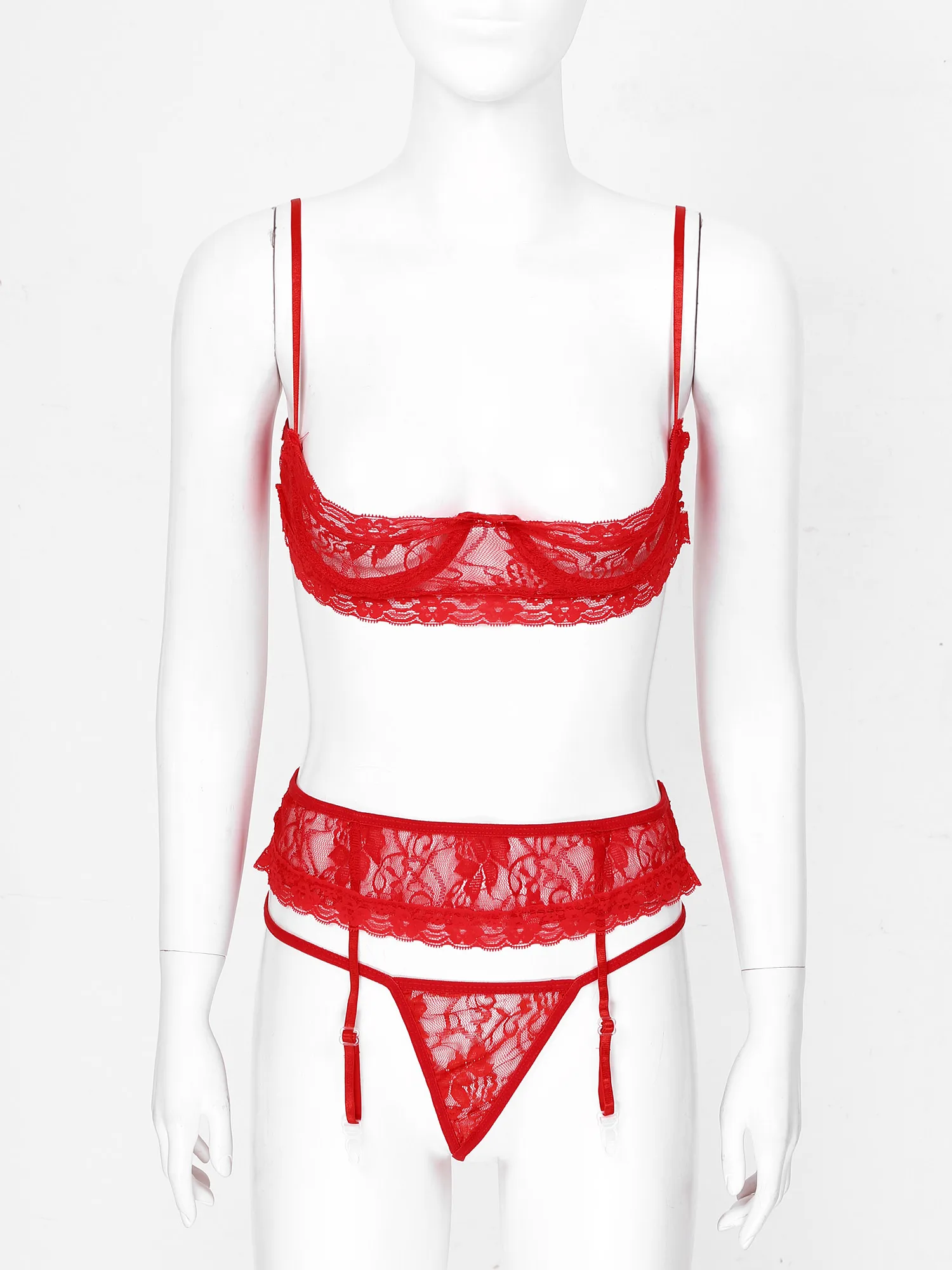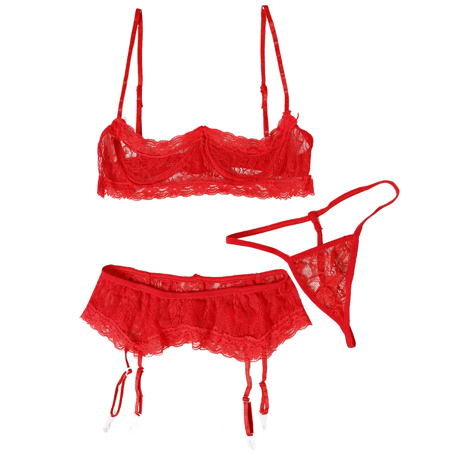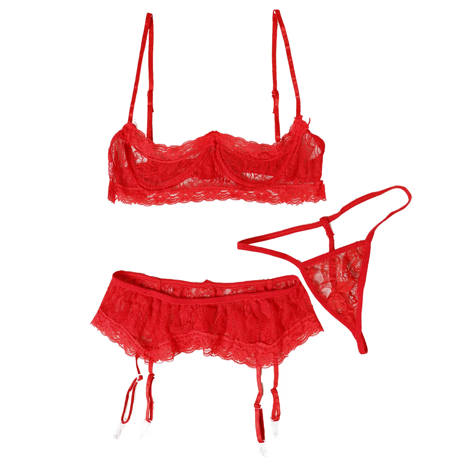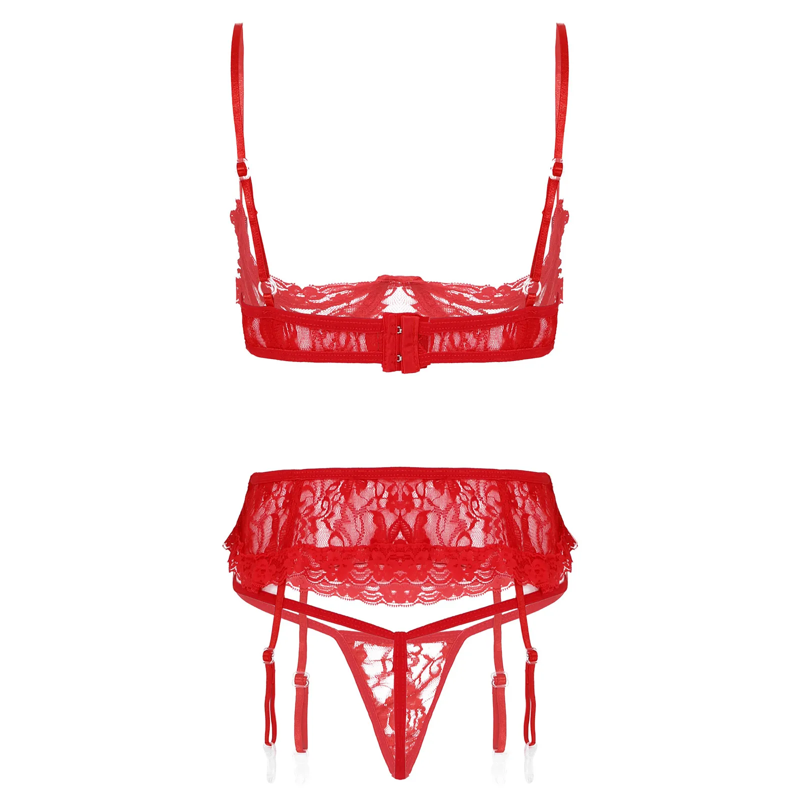 Особенности: Женский Прозрачный Кружевной Костюм из трех частей, нижнее белье, пижама. Комплект нижнего белья включает прозрачный кружевной бюстгальтер на косточках, стринги и подвязки. Изготовлен из высококачественного кружева, дизайн с открытой грудью делает вас привлекательной и привлекательной. Идеально подходит для свиданий, вечевечерние с нижним бельем, медового месяца, особых ночей и т. д. Пожалуйста, внимательно проверьте размер перед размещением заказа, ручная стирка в холодной воде.