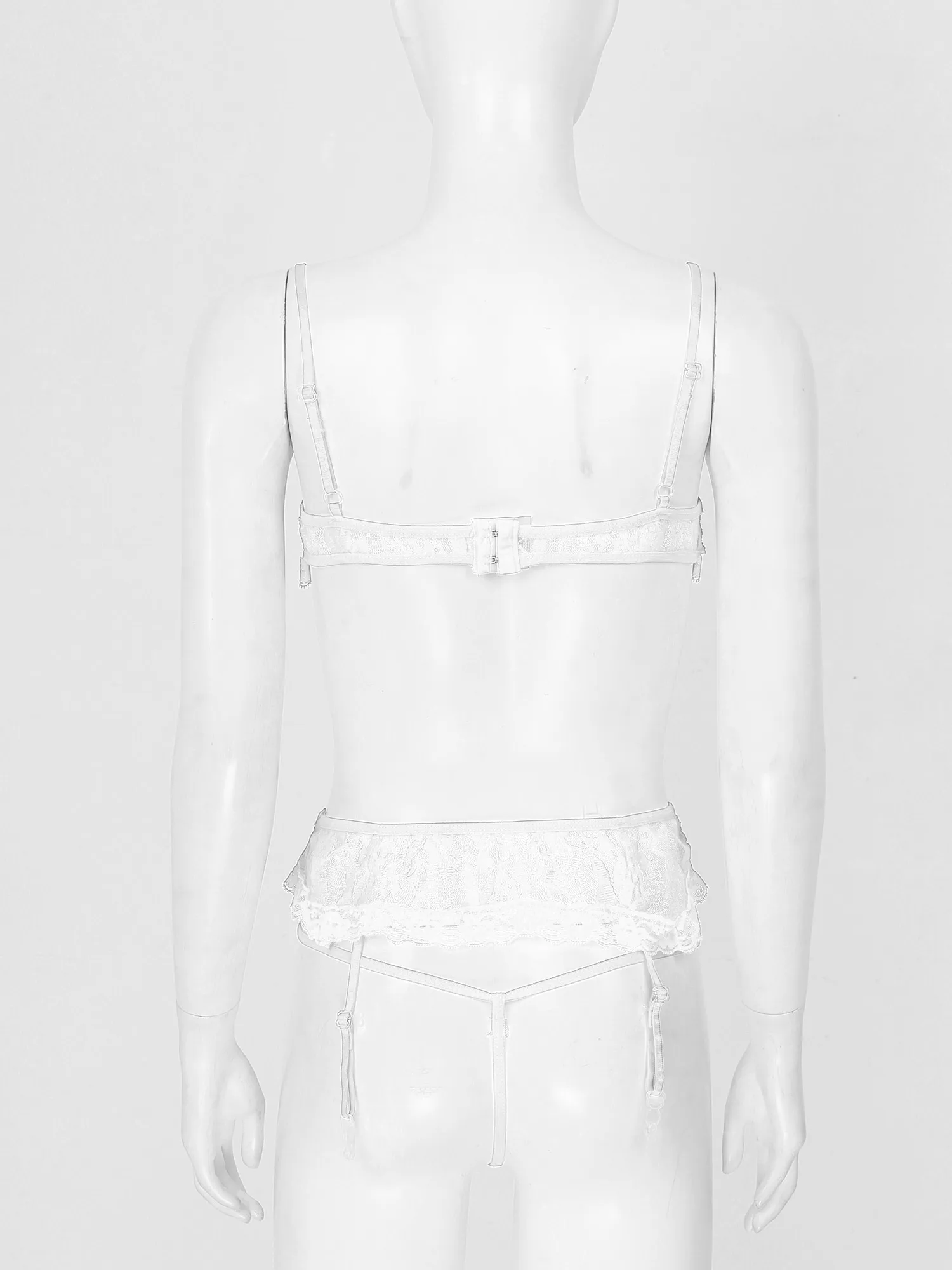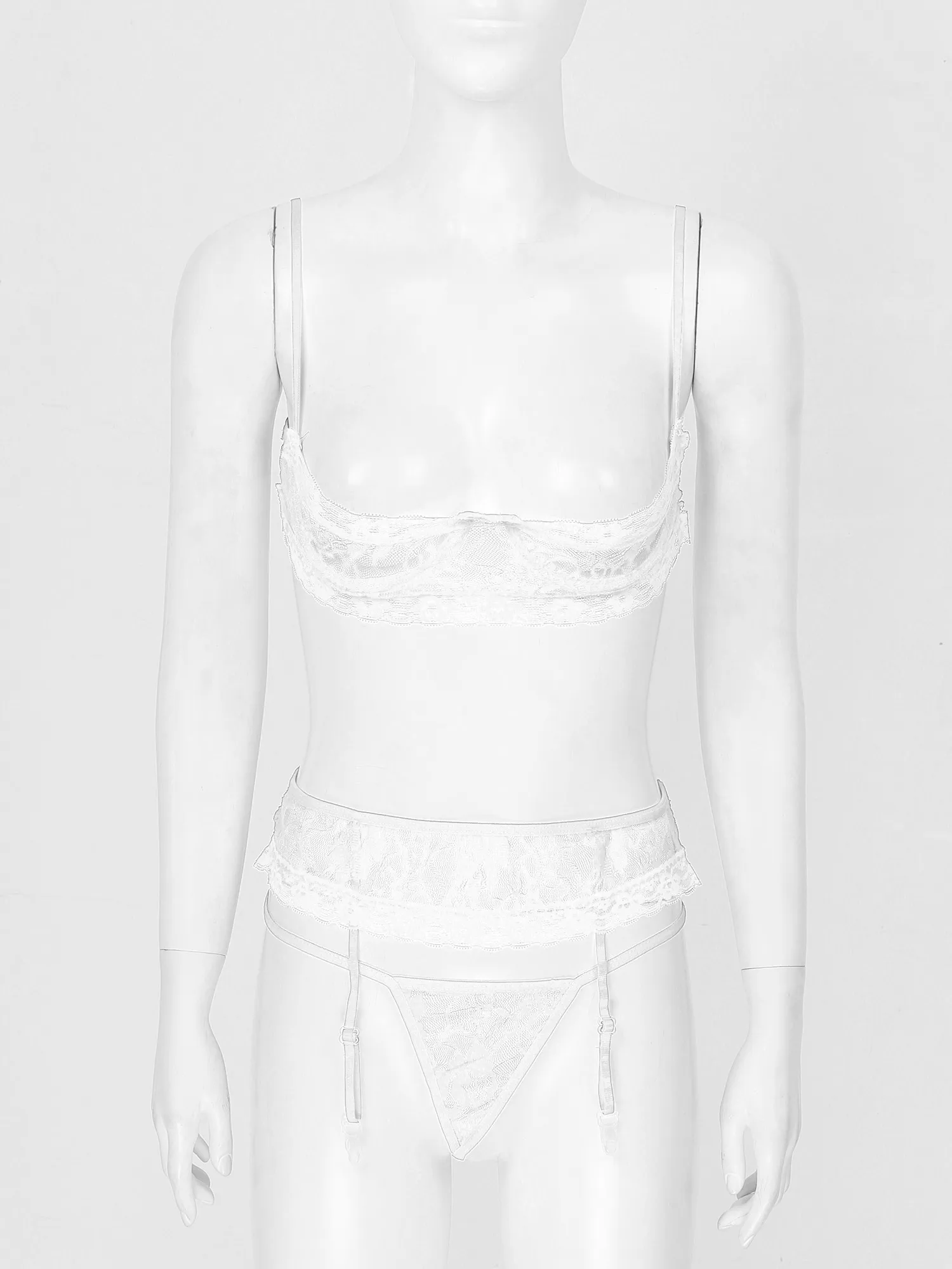 Женское прозрачное кружевное экзотическое нижнее белье, бюстгальтер на косточках с открытыми чашками и трусики-стринги, нижнее белье с подвязками